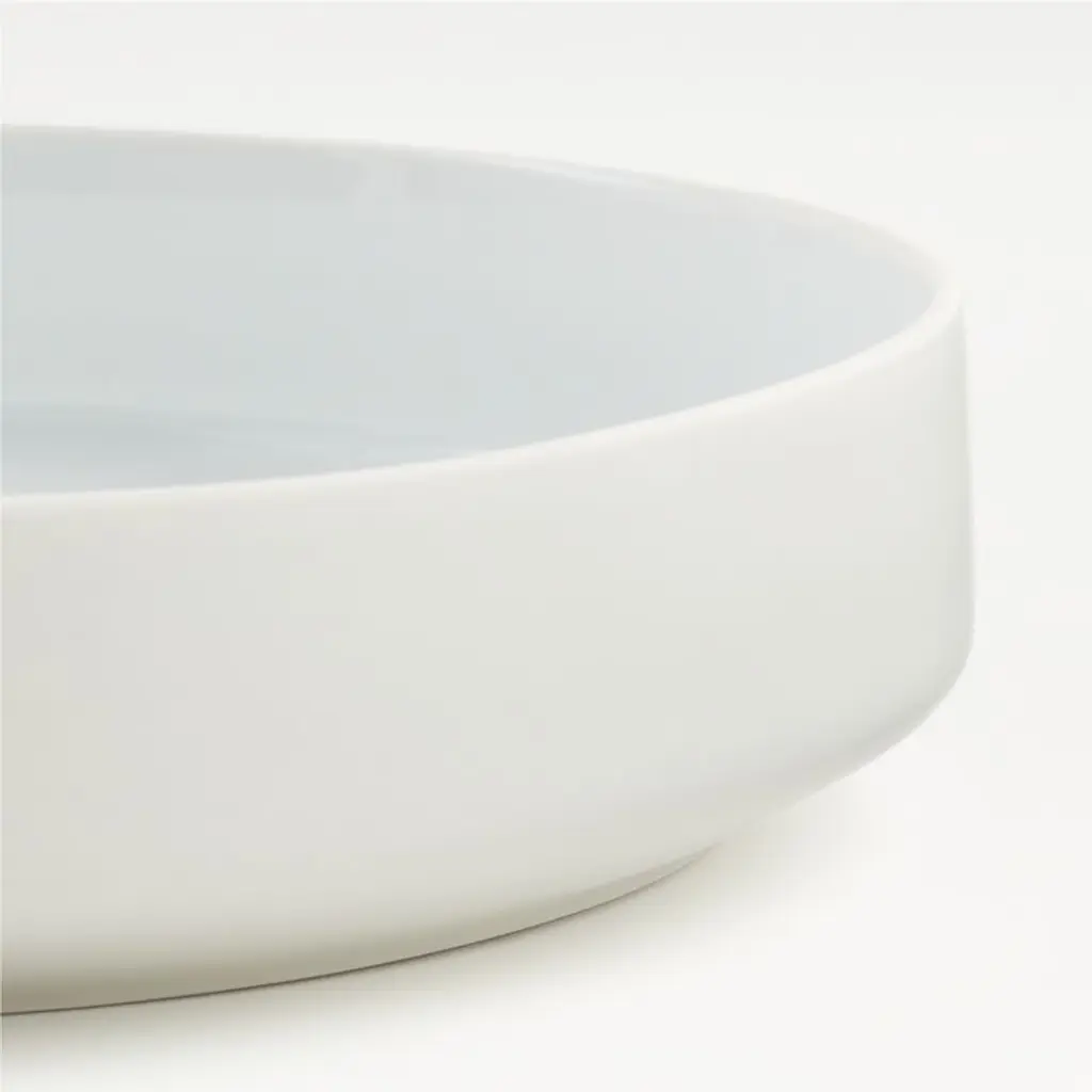 Inspired by our bestselling Tour glassware collection, our Tour dinnerware and serving pieces boast similarly angled silhouettes to set the table with modern edge. This straight-sided low bowlideal for pasta, salads and grain bowlsslants in toward the base for a softly sculptural profile. Hand-glazed matte white on the exterior and glossy within, the fine porcelain bowl belies its dishwasher-safe durability. Complete the look with our exclusive Tour wine and bar glasses, dishes and flatware.