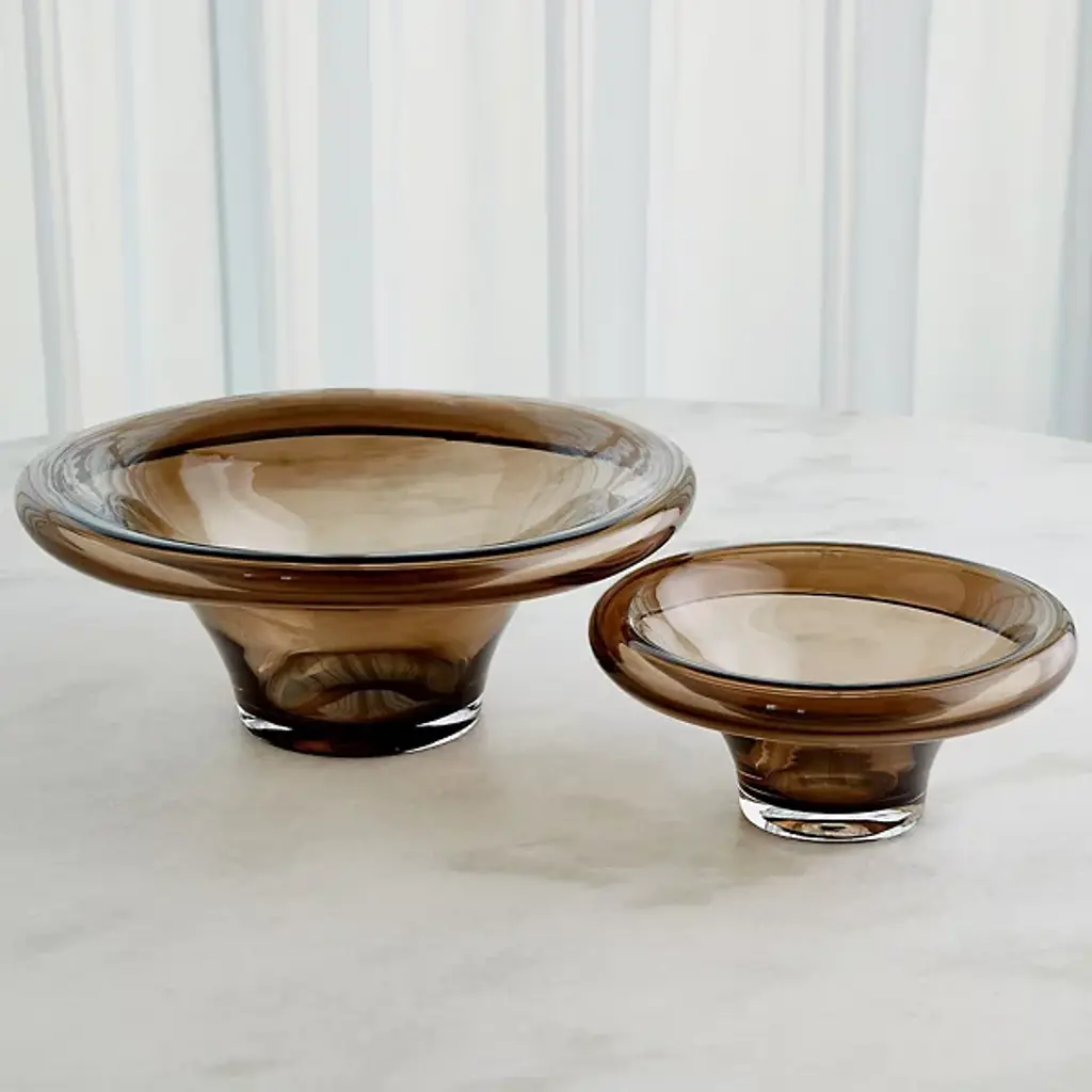 Give your living space a charming quality with the Tourneau Bowl from Global Views. This bowl is made of elegant art glass featuring a ring silhouette. Your bowl features a tapered base, keeping Tourneau well-balanced. Your bowl is both food safe and watertight, allowing you to use the bowl in a variety of ways.