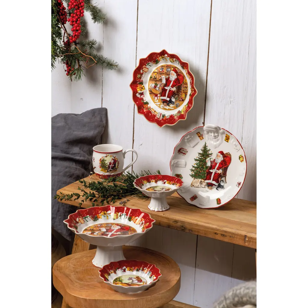 Inspired by the German Feast of St. Nicholas, the Villeroy & Boch Toy's Fantasy collection delights with its playfully ruffled dinnerware and serveware pieces embellished with festive patterns. For 2020, the collection features Victorian-inspired renderings of Santa and woodland creatures in a snowy scene.