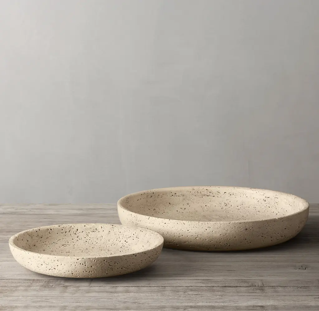 Expertly crafted and finished by hand, our travertine bowls are a study in sculptural simplicity. Natural variations in the stone's distinctive veining, tonal hues and organic texture reveal the inherent beauty and one-of-a-kind character of each piece.