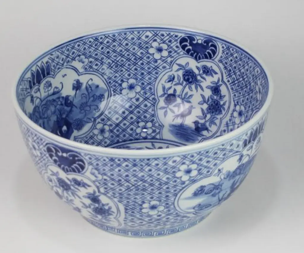 *Lead time is 1-2 weeks; however, depending on vendor's stock-levels, the item may be 'ready to ship' and arrive within one week.* This stunning mid-sized porcelain display bowl is the perfect accent to your home décor! Offering a beautiful round shape and gorgeous hand painted design, this bowl is the perfect accent centerpiece when filled with fruit, used as a planter or as a stand-alone! The stunning trellis and floral design in white and blue makes this just the piece you have been looking for!
