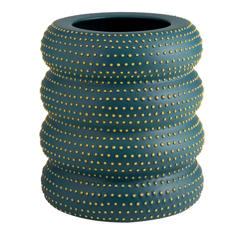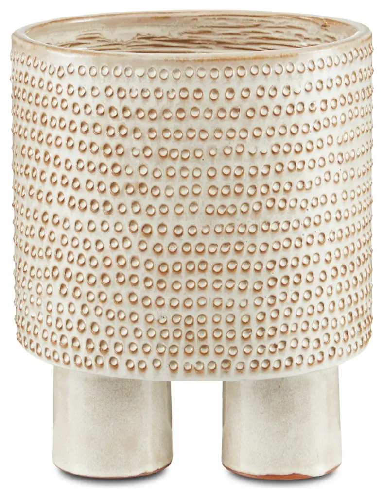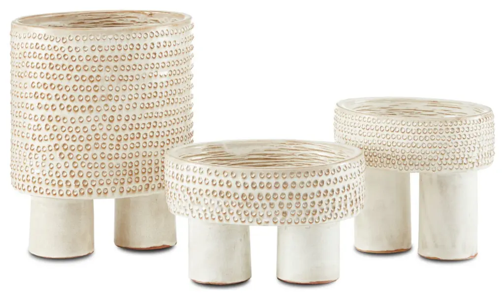 The Tula Large Ivory Bowl is a multi-dimensional work of art. Hand-thrown from ceramic, the pattern on the surface of the decorative accessory is achieved when an artisan punches it with a tool to create one circle at a time. The raised shapes that are created and the striations on the inside resist the ivory reactive glaze to let the original color of the material show through. We offer the Tula in ivory in three sizes, which make them perfect for arranging in a display.