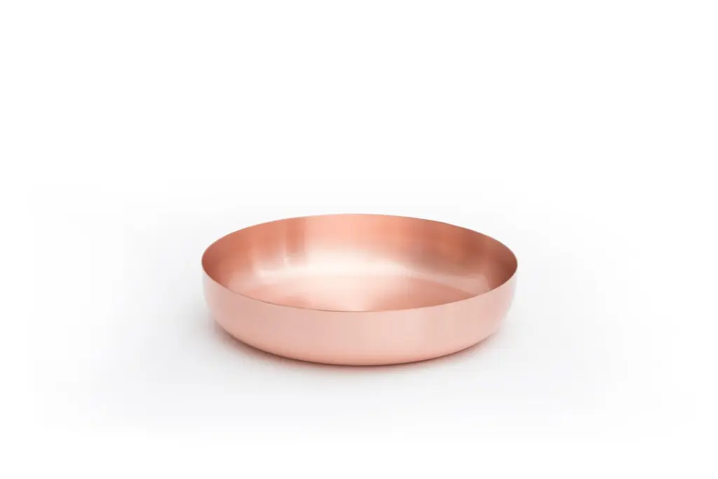 Turned Copper Diogenèa Bowl by ZPS StudioDimensions: D 23 x H 4.8 cmMaterials: Turned Copper.A number of 31 bowls of identical shape, made in limited edition by fine Italian artisans in 31 different materials: Diogenèa - A tale of bowls is a reflection on the archetypal forms related to food, and a tribute to the essence of an object the bowl that can be said a model to compare multiple changes of materials and different processes, if applied to an identical mold (from marble to crochet, from marsh grass to charred wood, from gold-leaf to terracotta from Impruneta).Each one of these materials carries a tale of technology, territories, handycraft traditions and precious matter.ABOUTZPSTUDIO is an architecture and design firm that emphasizes multidisciplinarity and innovation in every project. Established in Florence in 2003 by Eva Parigi and Matteo Zetti, the practice is focused on pursuing the perfect balance between tradition and avant-garde. Taking advantage of a year-lasting experience, spanning between different areas (retail, interior and product design) the work of ZPSTUDIO has earned its reputation by delivering the most accurate consultancy to its customers, providing them with an extensive and integrated vision of their needs. Attention to detail in every project is paramount to the company’s success in a broad range of works. The company’s services include interior design, architecture, product design, custom furniture and lighting, project development. Over time ZPSTUDIO works have been awarded in international design competitions, and they are being featured in leading specialized press.