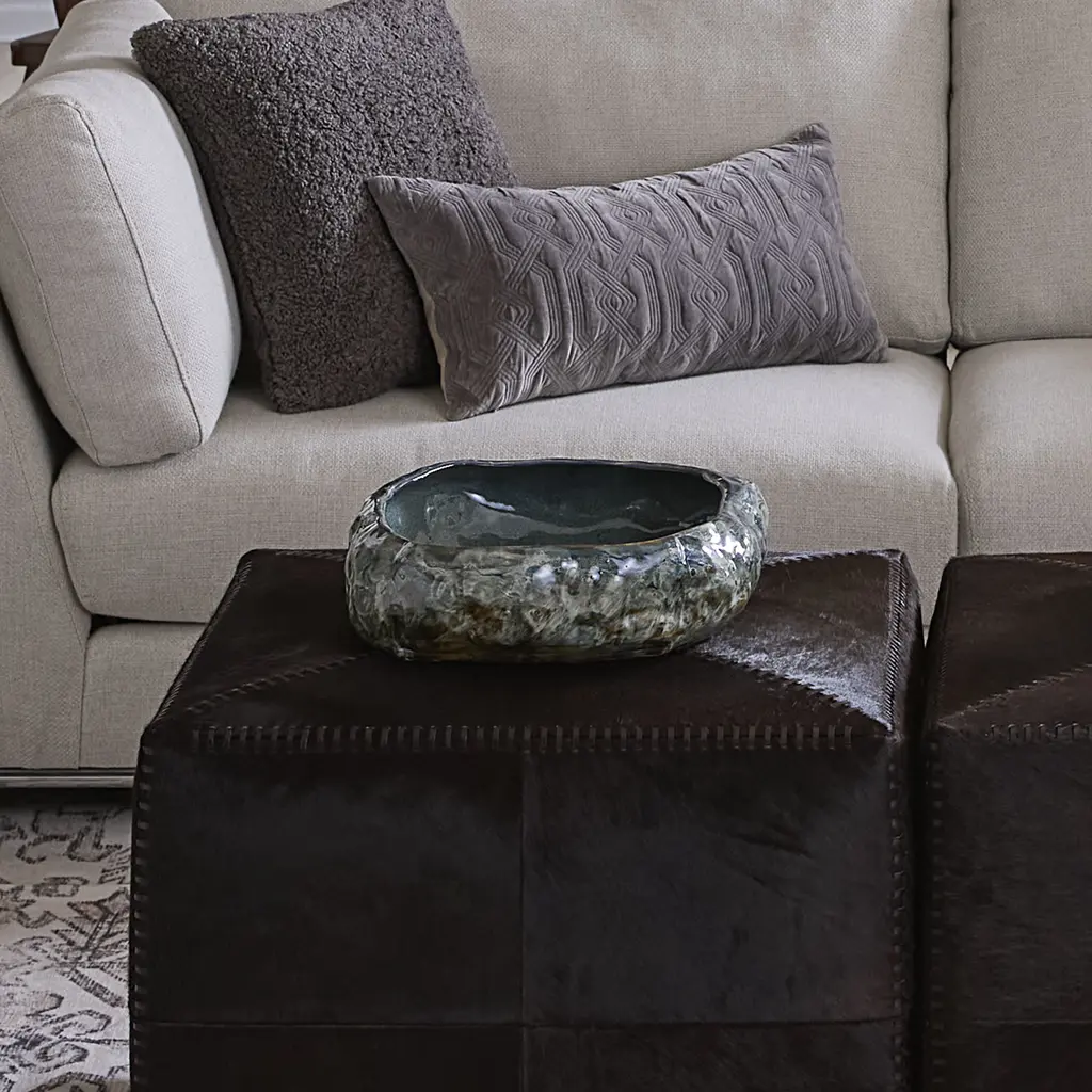 Artisans enhance the organic lines of these handcrafted ceramic bowls with a captivating finish. The reactive glazing and expert antiquing techniques create a look reminiscent of ancient, unearthed treasures. The meticulous processes ensure that each bowl is a unique work of art, with no two being identical.