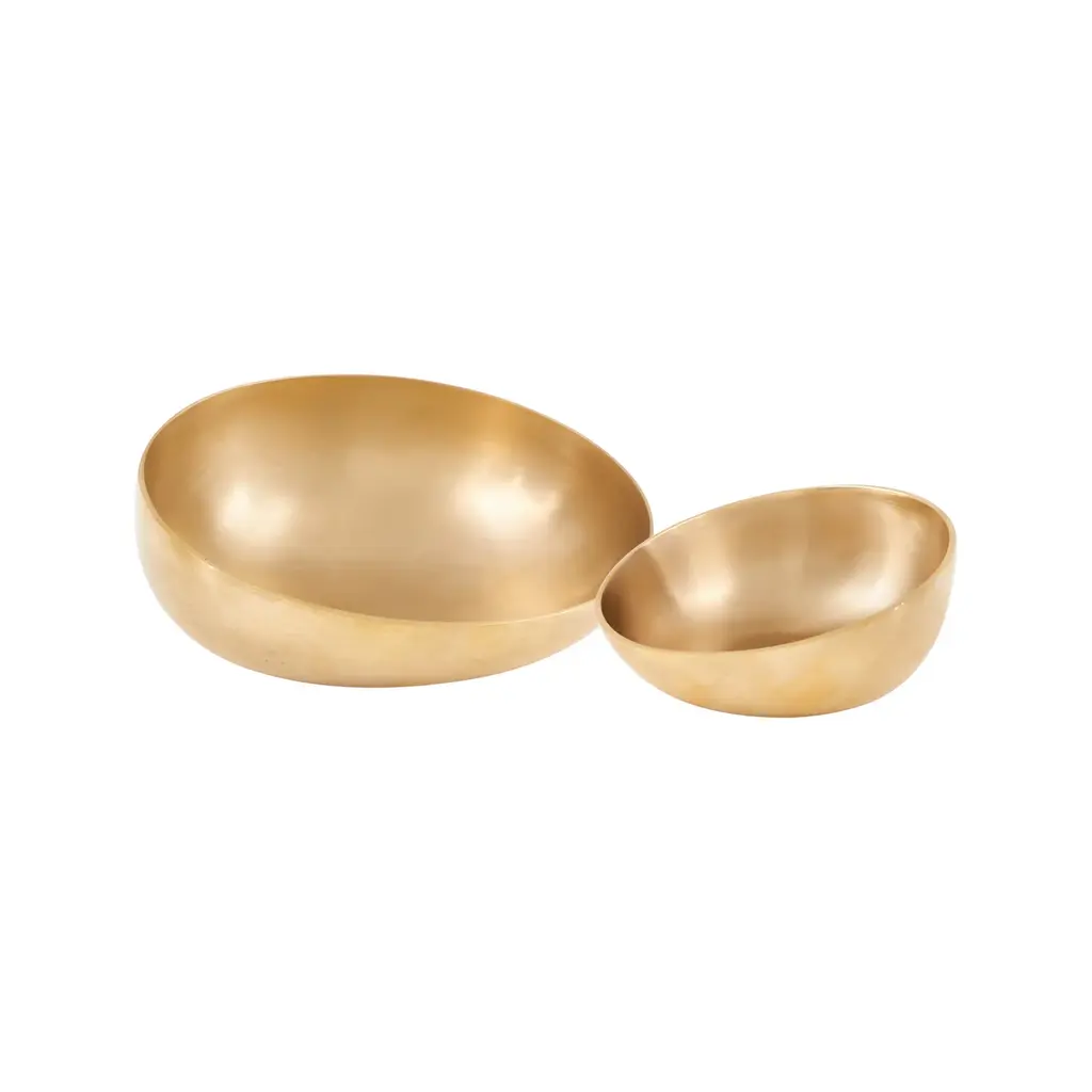 This Set Of Organically Shaped, Cast Aluminum Bowls Feature A Textured Antique Brass Finish With Smooth Interior. Bowls, Set Of 2 from the Ovate collection in Antique Brass finishThis Set Of Organically Shaped, Cast Aluminum Bowls Feature A Textured Antique Brass Finish With Smooth Interior.Width: 15.00"Height: 4.50"Length: 12.00"Weight: 8.60 lb