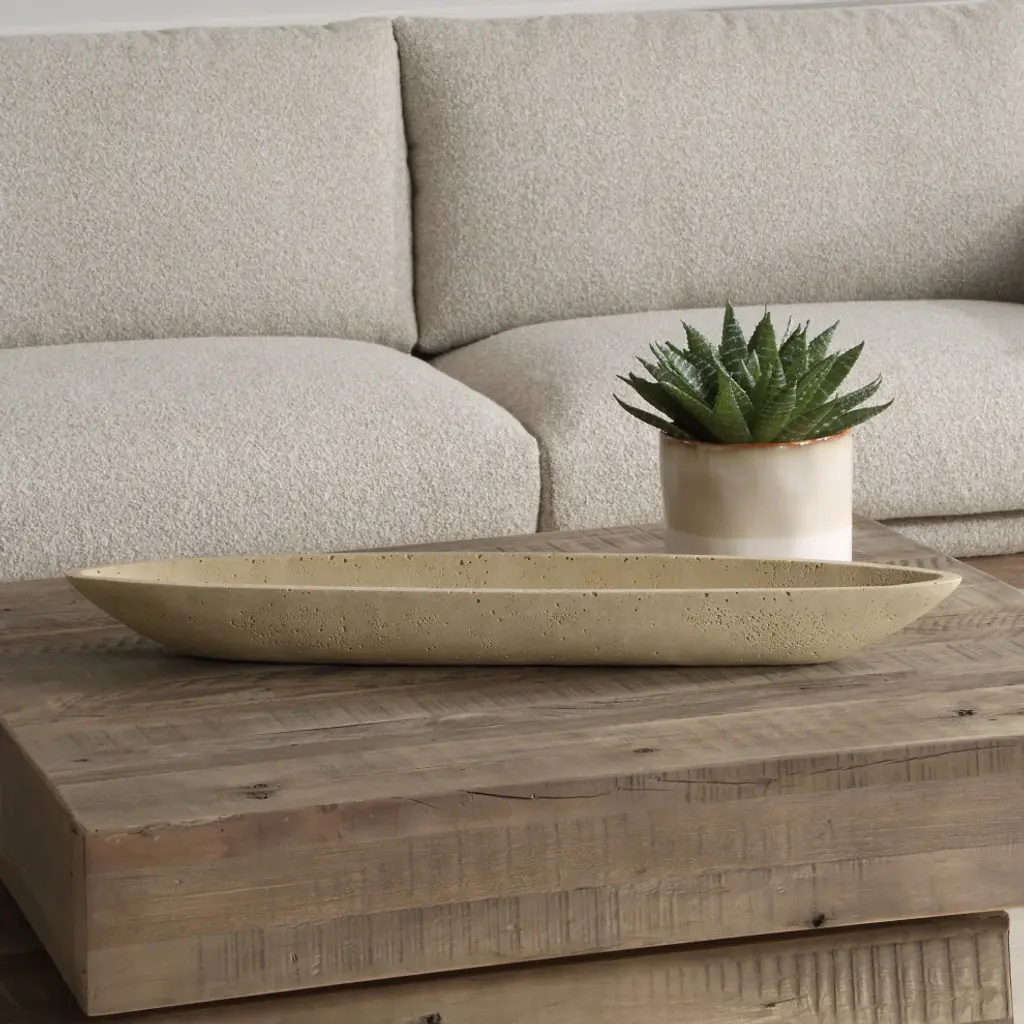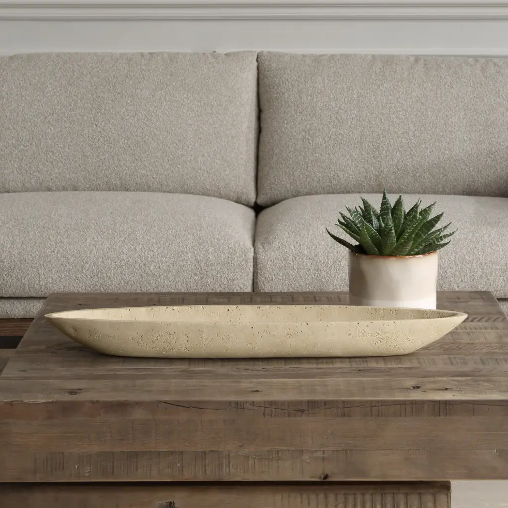 Embrace The Perfect Fusion Of Aesthetics And Utility With This Canoe-shaped Bowl, Crafted From A Unique Cast Ivory Man-made Stone That Replicates The Look Of Travertine. Bowl from the Vessel collection in Ivory finishEmbrace The Perfect Fusion Of Aesthetics And Utility With This Canoe-shaped Bowl, Crafted From A Unique Cast Ivory Man-made Stone That Replicates The Look Of Travertine.Width: 29.00"Height: 2.75"Length: 6.50"Weight: 10.00 lb