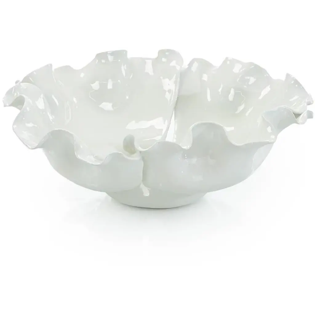Uttermost Ruffle White Bloom Ceramic Bowl