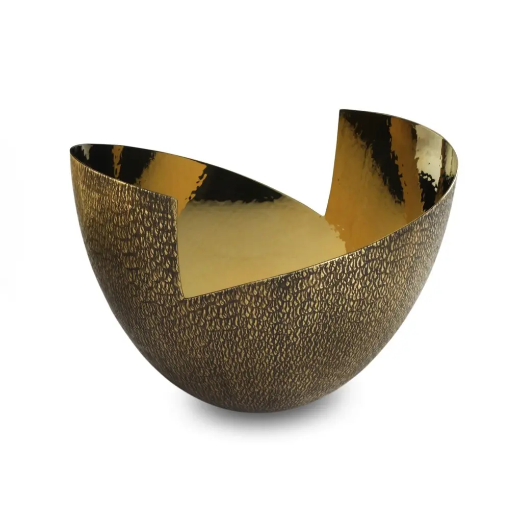 The Vela bowl has a polished brass interior and a burnished exterior in a Corteccia texture.