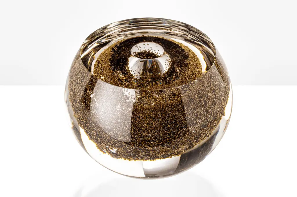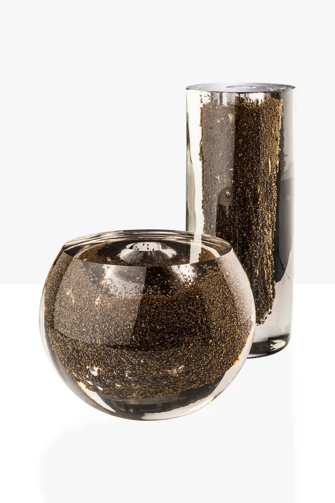 Palpito Glass bowl and vase, designed and manufactured by Venini, feature a crystal body with metal decoration. Limited edition of 49 art pieces (per version). Indoor use only.Dimensions: Ø 25 cm, H 19 cm.