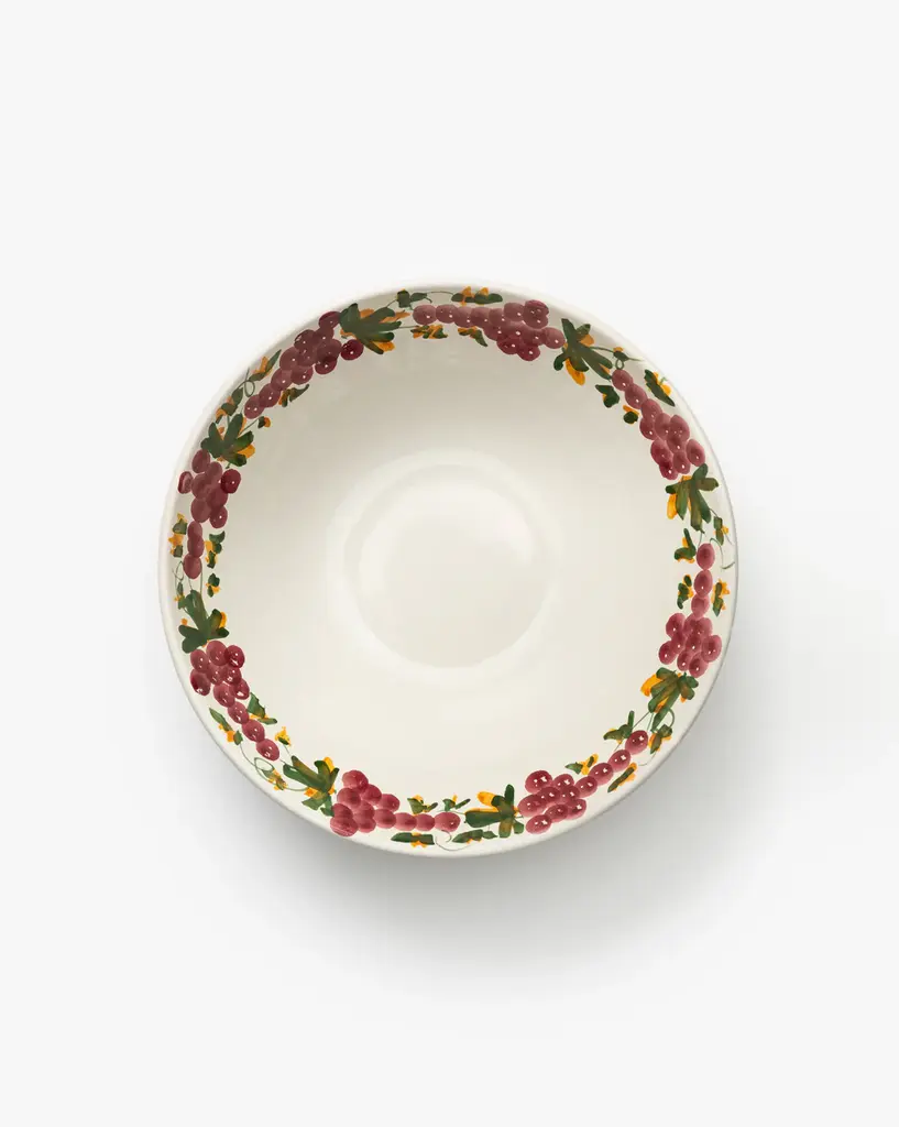 Featuring a beautiful hand-painted green and pink grapevine motif, Sharland England's Vine Large Bowl is a timeless addition to any table setting. The handmade ceramic bowl is a must-have for hosting, bringing both character and elegance to your gatherings.