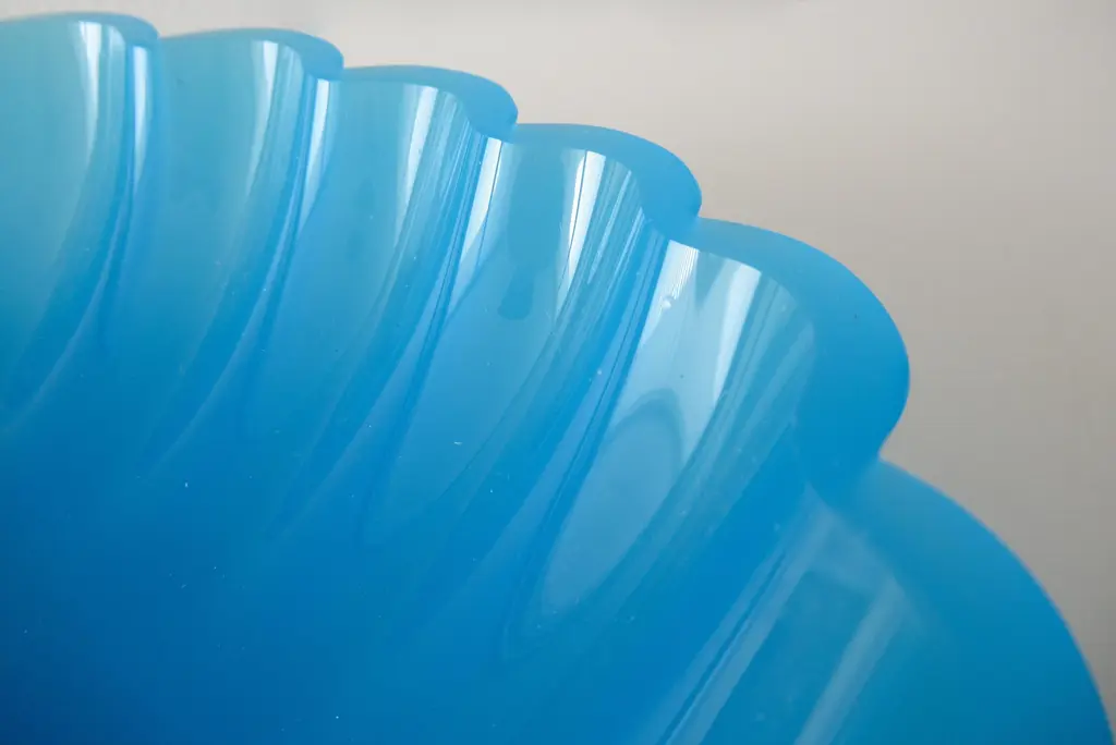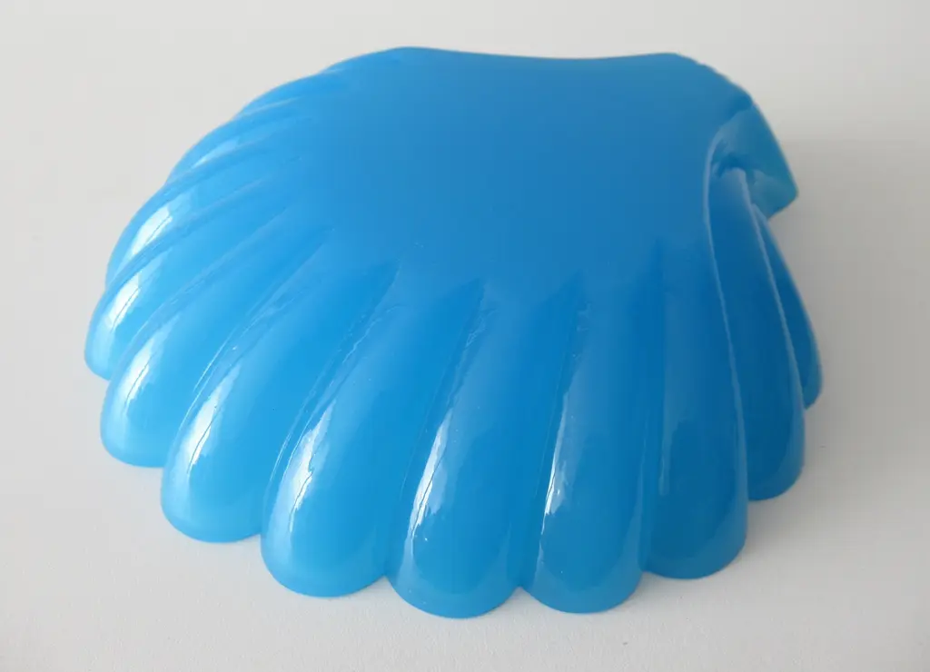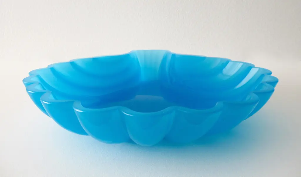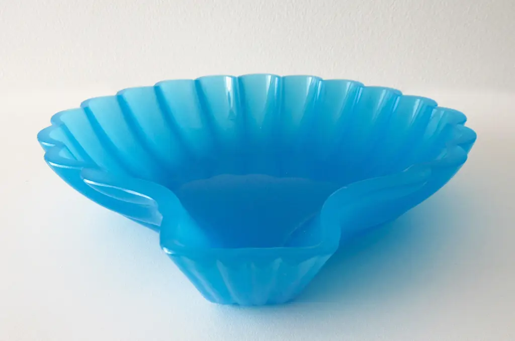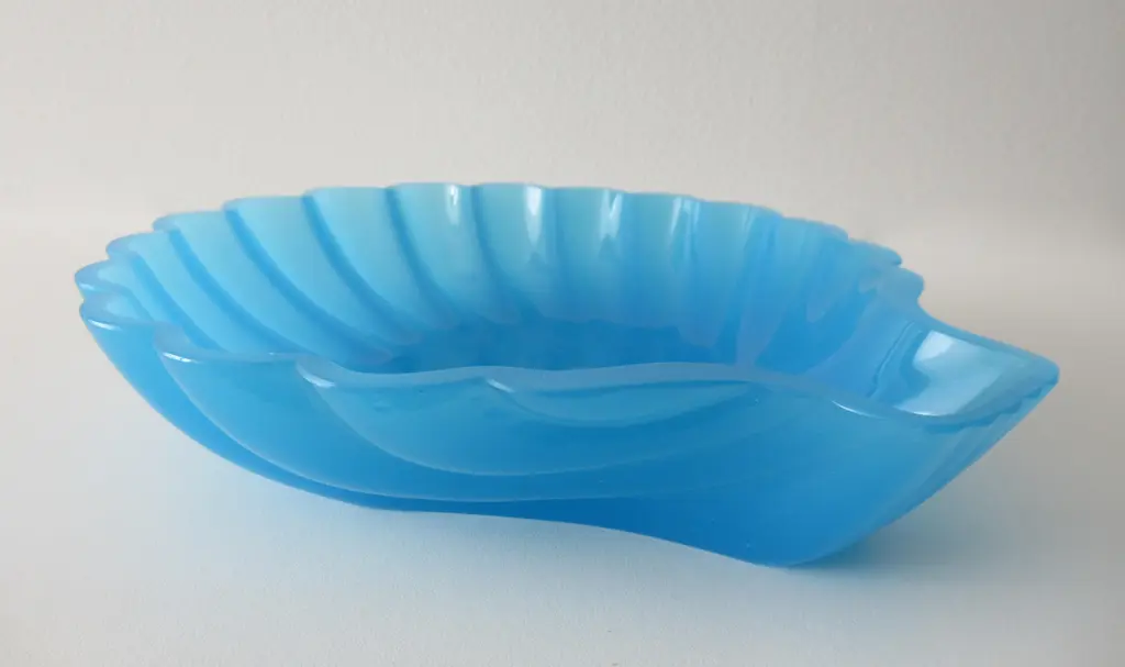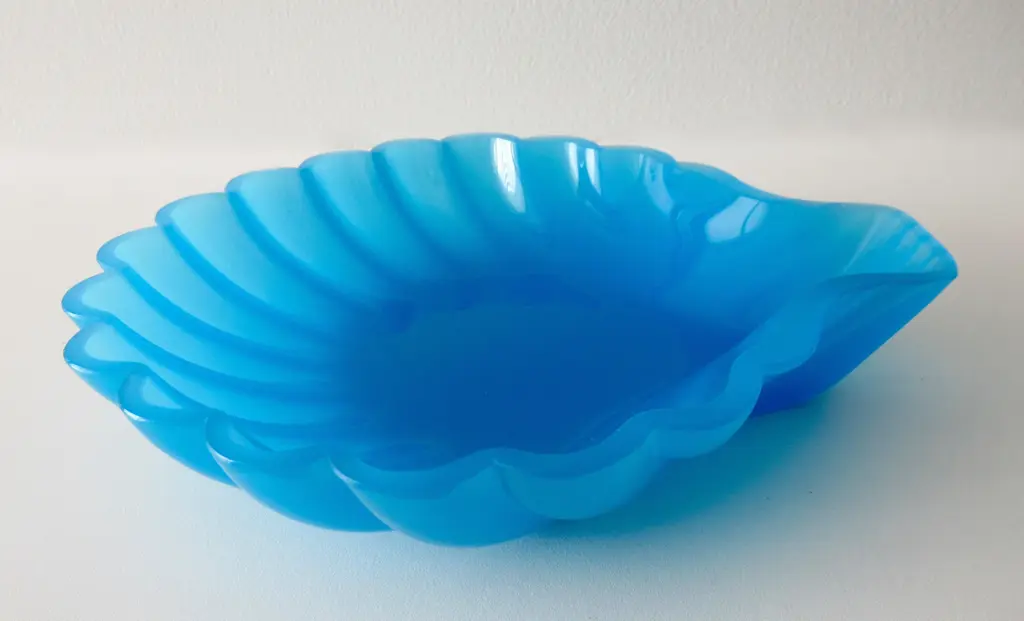 Vintage C.1890's - C.1910 French Blue Opaline Glass, Large Scalloped Shell-Shaped Center/display Bowl