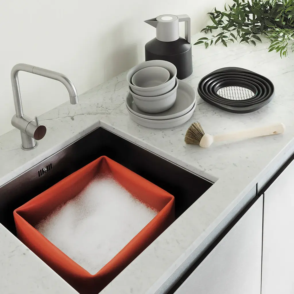 Washing-Up Bowl is an innovative and flexible piece of kitchen equipment that breaks up the boredom of everyday routines. Normann Copenhagen is now launching the Washing-Up Bowl in inviting colors that ooze simplicity, cleanliness and Scandinavian elegance. Washing-Up Bowl is also a useful object for many other things around the house, and the bold and original design offers endless possibilities to meet your every need. Use it to clean dishes, store toys, hold plants, as a magazine holder, or even as an ice cooler for champagne. The Washing-Up Bowl is flexible and strong and the design makes it suitable for everything from flowers and a foot bath to storage be it indoors or outside. An extra brush - for the Washing-Up Bowl - is available for purchase, here .