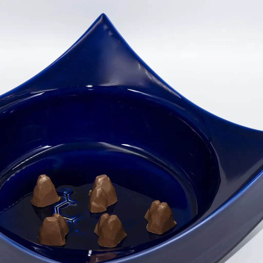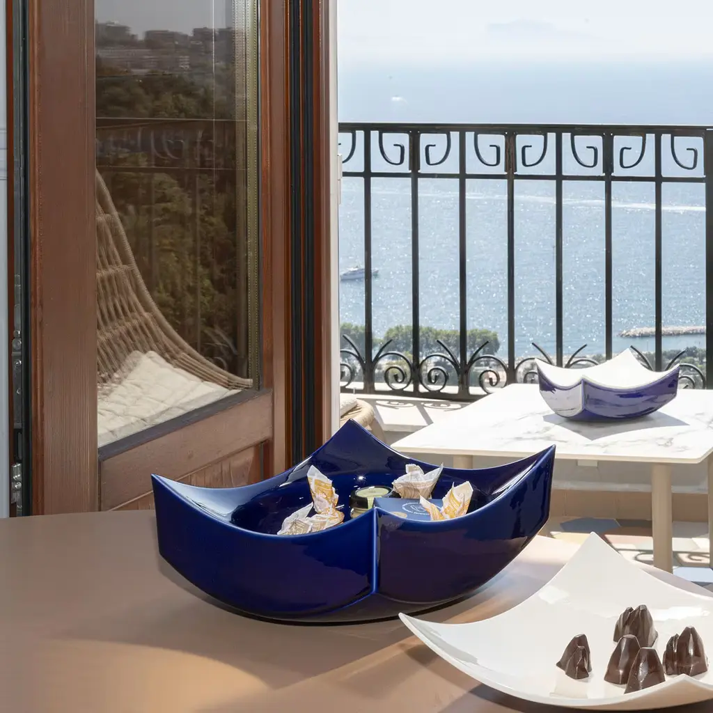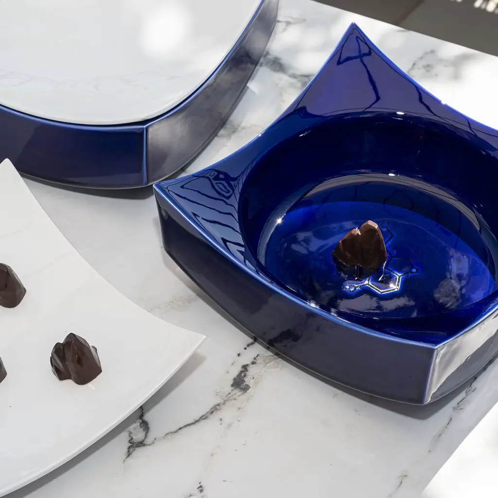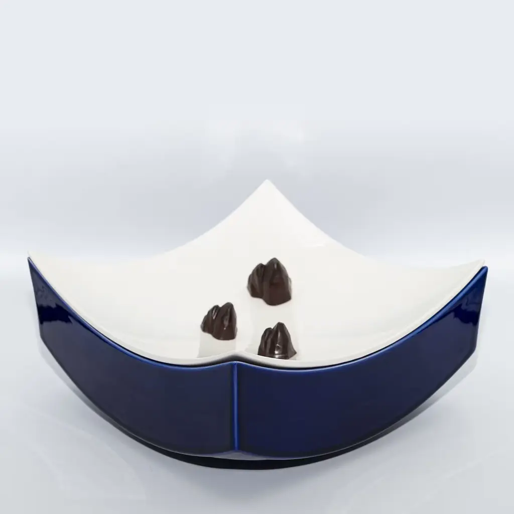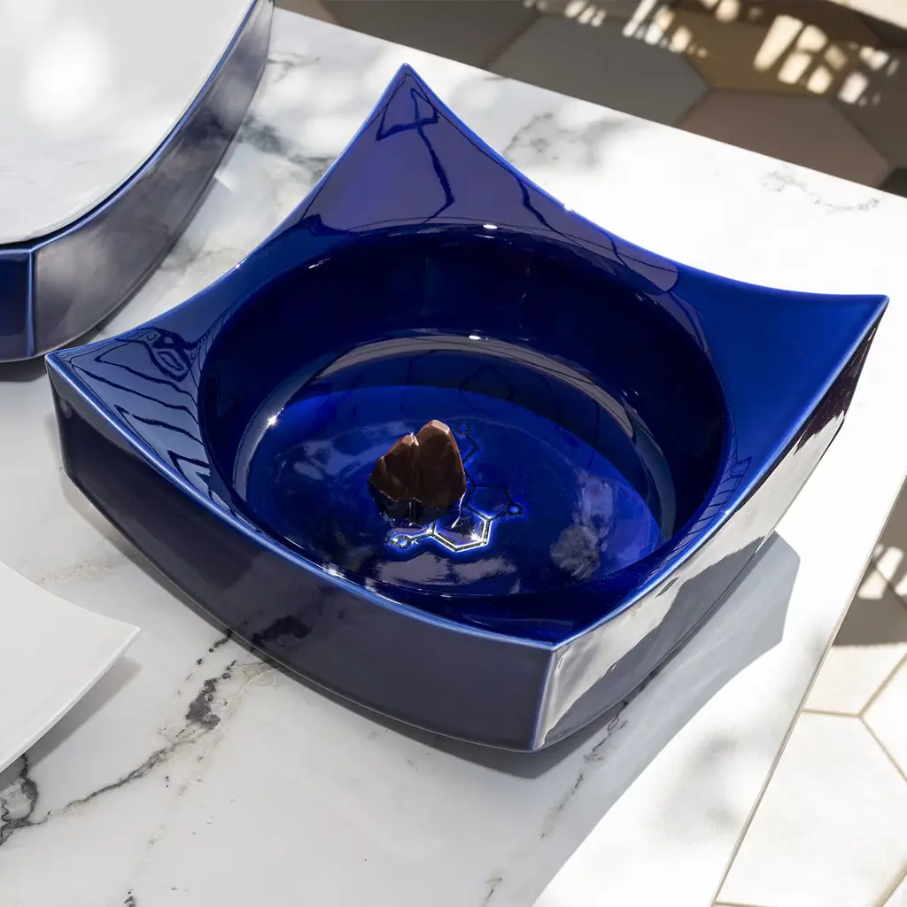 Fruit of the collaboration between designer Cristian Visentin and chocolate entrepreneur Francesco Acampora, this superb bowl was conceived as a fresh solution for optimized chocolate tasting. Its vibrant cobalt-blue and bright white glazes celebrate the coastal landscapes of the island of Capri, an evocative design obtained through a minute manual crafting process by Milan-based BL Ceramiche. The concave lid seals the design, keeping air from filtering inside while serving as a tray.