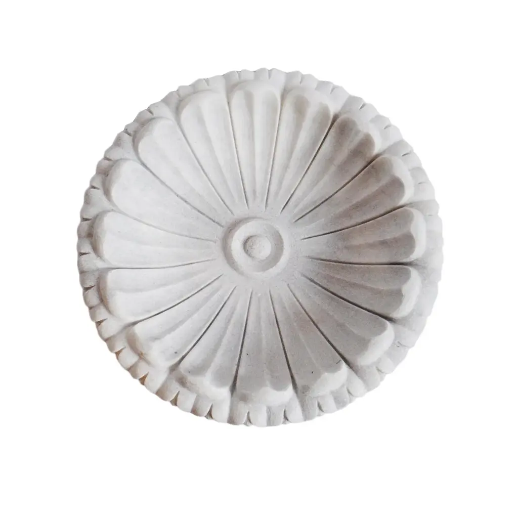 Beautiful solid white marble lotus flower bowl. Carefully hand carved with elegant shape these wonderful bowls are a traditional India form with many uses. Great piece for indoors or out. Each is slightly unique with natural marble tones/veining and handmade characteristics.