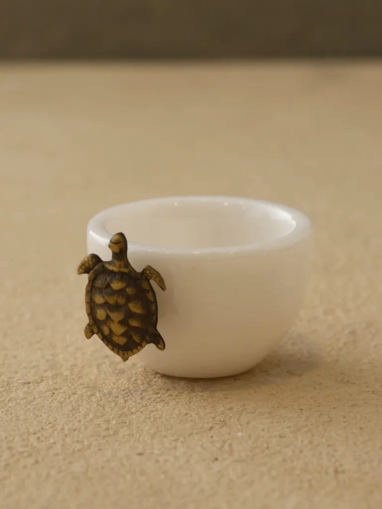 White Porcelain Snack Bowl With Bronze Turtle Accent