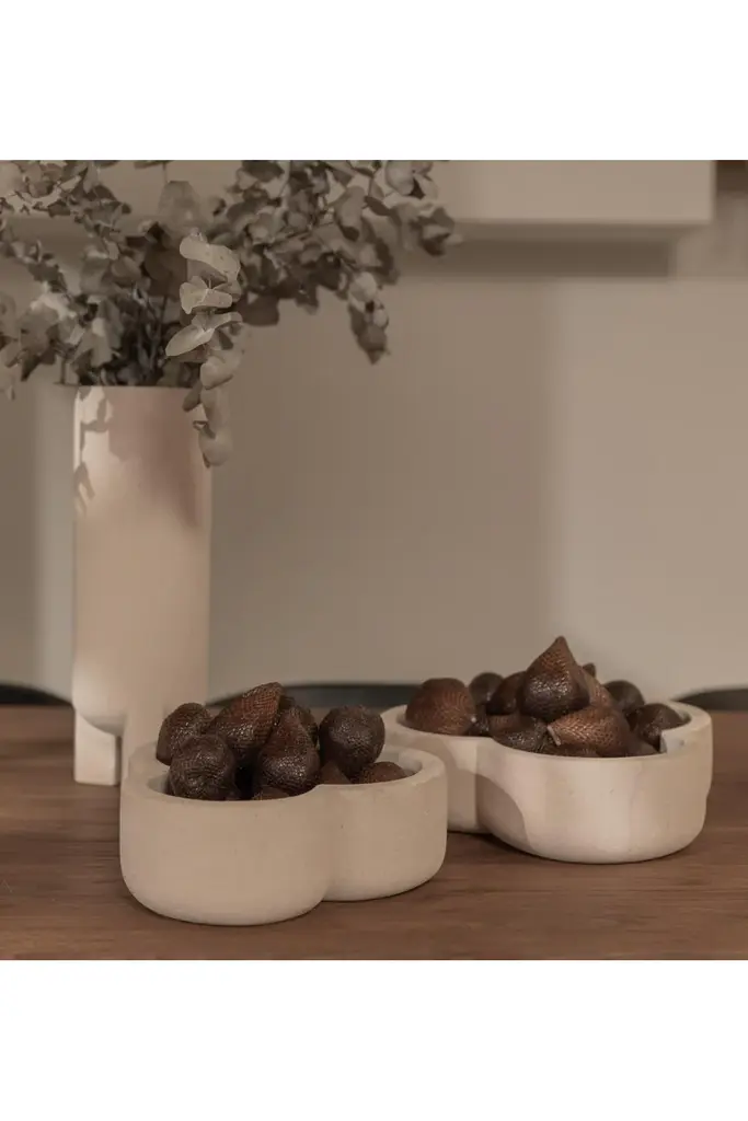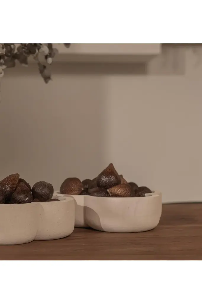 The dBodhi Bowl Range are finely sculpted vessels, inspired by the dBodhi logo mark. Each is a ‘Trefoil’ shape consisting of three interlocking cylinders. Hand crafted in local Java sand stone, each bowl has a beautifully curved base and because of the delicate veined characteristics of the stone, ranging from pale pinks and yellows to golden honey hues.