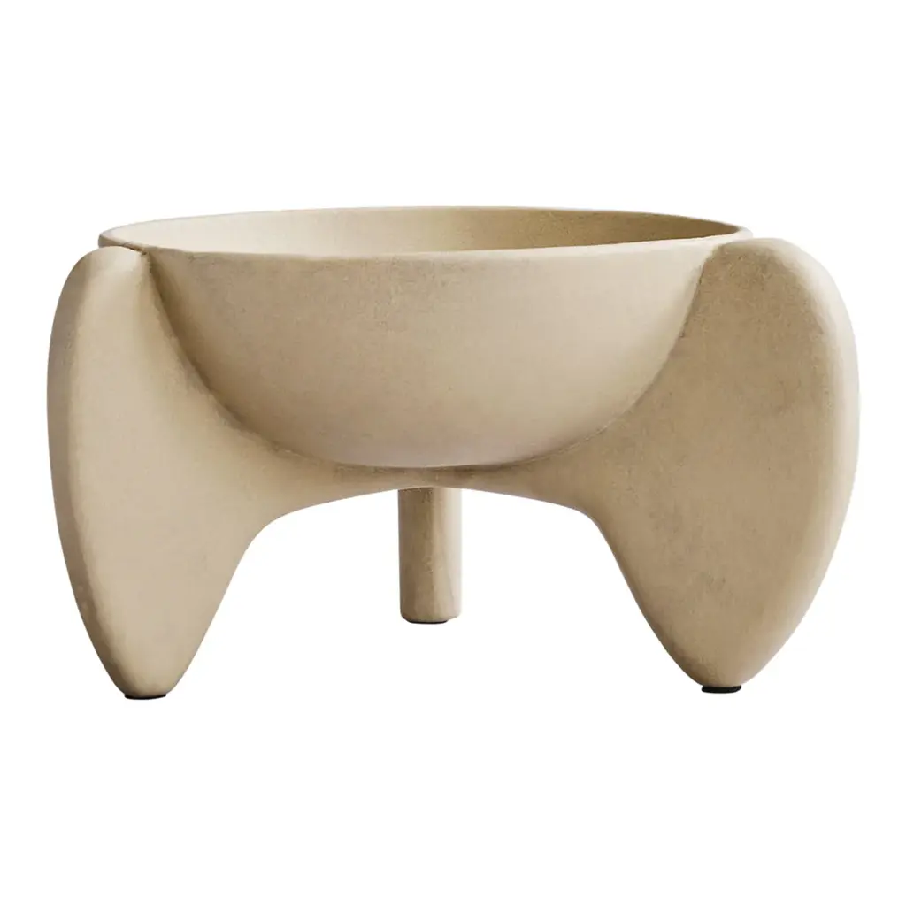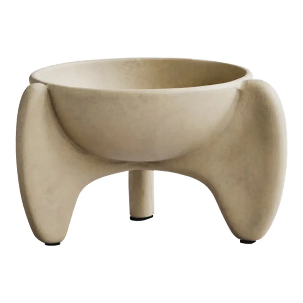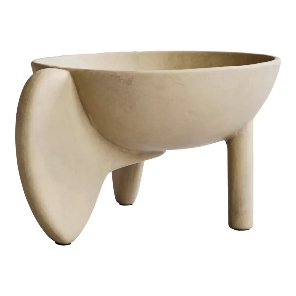 It is all about gravity and a sense of floating through the air. Wing is a sculptural collection of bowls that makes one want to be lifted into thin air even though its presence is very much grounding as well. The silhouette is made up of two wings and a single cylinder-shaped leg as a steady contrast. The bowls are casted in a lightweight fiber concrete. Use Wing as a container or as a standalone art piece on the table. Note that it is not 100% waterproof. Designed by Kristian Sofus Hansen & Tommy Hyldahl.