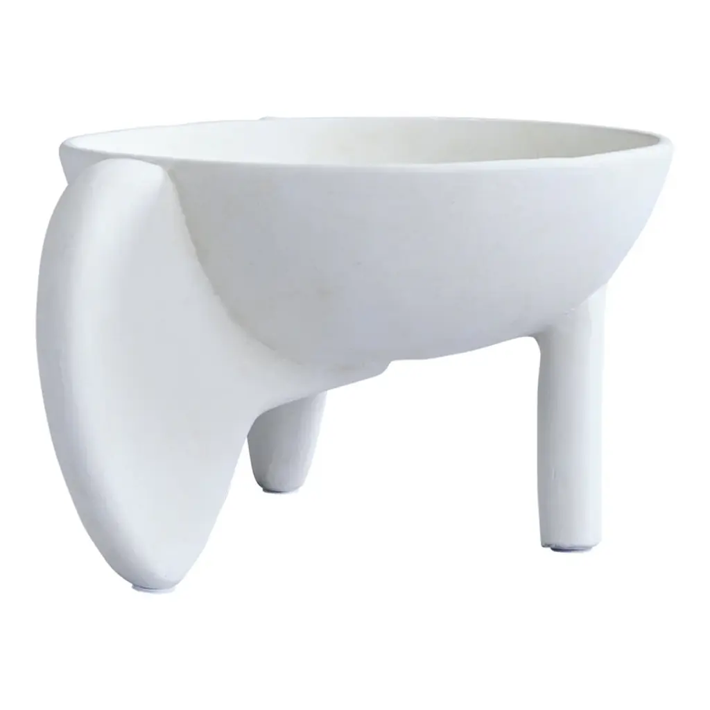 It is all about gravity and a sense of floating through the air. Wing is a sculptural collection of bowls that makes one want to be lifted into thin air even though its presence is very much grounding as well. The silhouette is made up of two wings and a single cylinder-shaped leg as a steady contrast. The bowls are casted in a lightweight fiber concrete. Use Wing as a container or as a standalone art piece on the table. Note that it is not 100% waterproof. Designed by Kristian Sofus Hansen & Tommy Hyldahl.