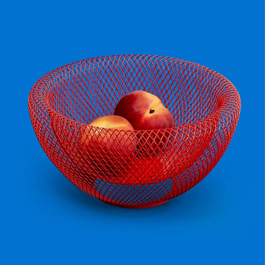 Store fruit and vegetables in a bowl that will keep them fresh and pretty at the same time. These Wire Mesh Bowls are specially designed to allow constant air circulation and thus prolong the freshness of fruit. Plus, the “folded” double-walled design creates an eye-catching, three-dimensional effect. Made to last, the bowls are manufactured from steel with a durable and easy to clean powder coated finish. The bowls come in different bright colors, to complement any kitchen decor. Thanks to the fun, contemporary design, you can use these Wire Mesh Bowls in any kitchen or as a centerpiece on a dining table.