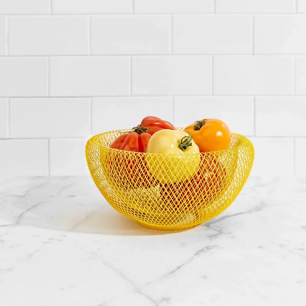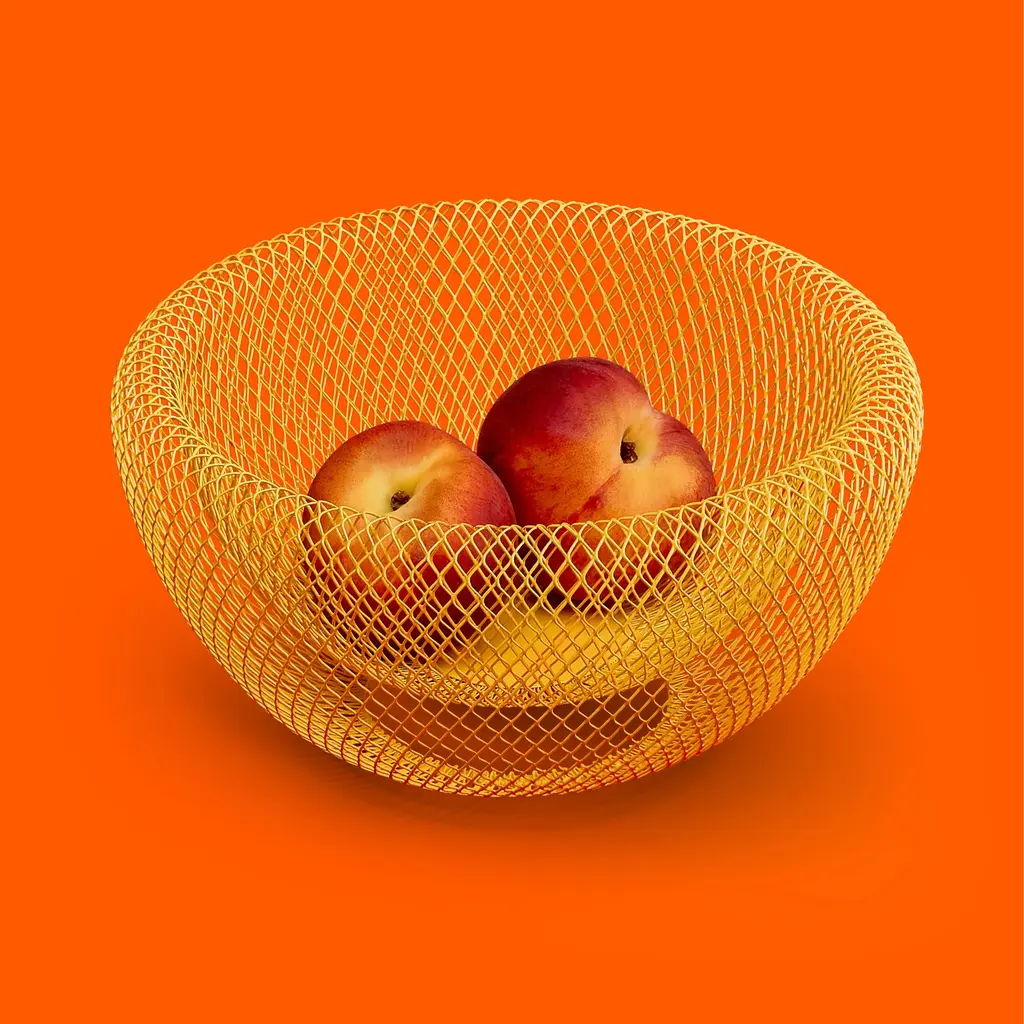 This eye-catching bowl is ideal for serving and storing fruit: the double-walled mesh design allows for air circulation, keeping your fruit fresh. Powder-coated steel. Hand wash only.