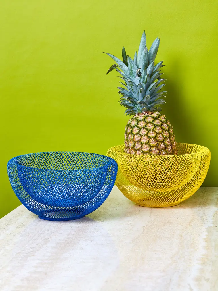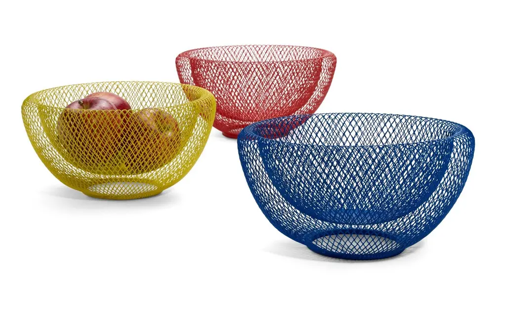 This eye-catching bowl is ideal for serving and storing fruit: the double-walled mesh design allows for air circulation, keeping your fruit fresh. Powder-coated steel.