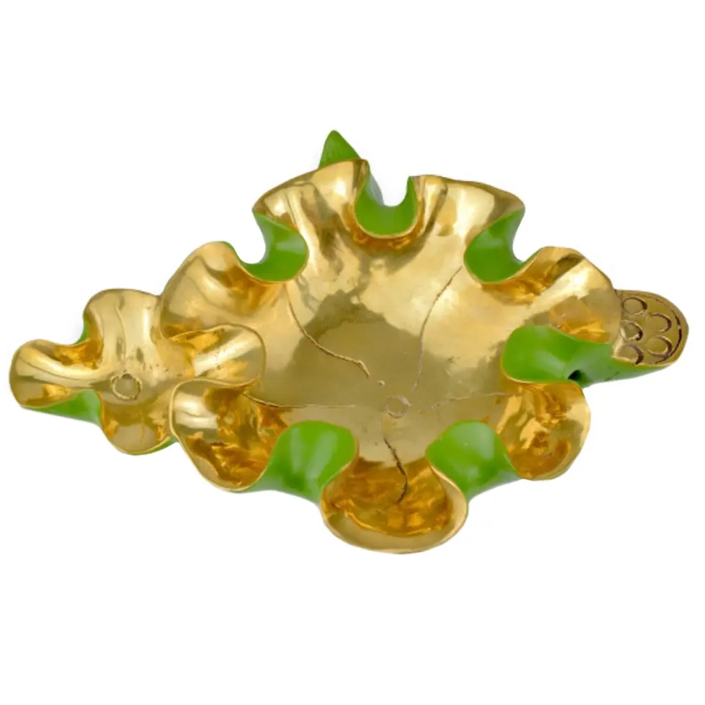 Wrapped Lotus Leaf Bronze Bowl, Green/gold