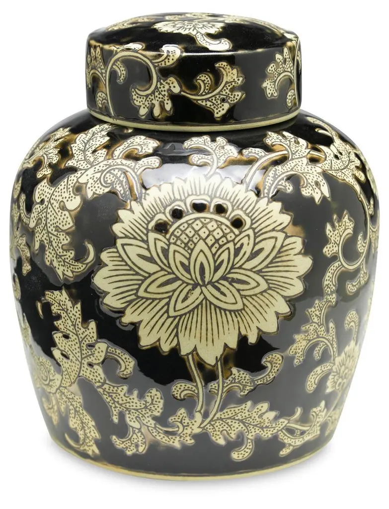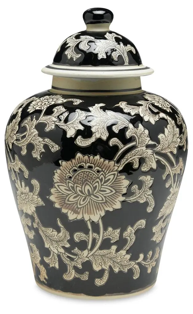 14" Florent Ginger Jar, Black/cream