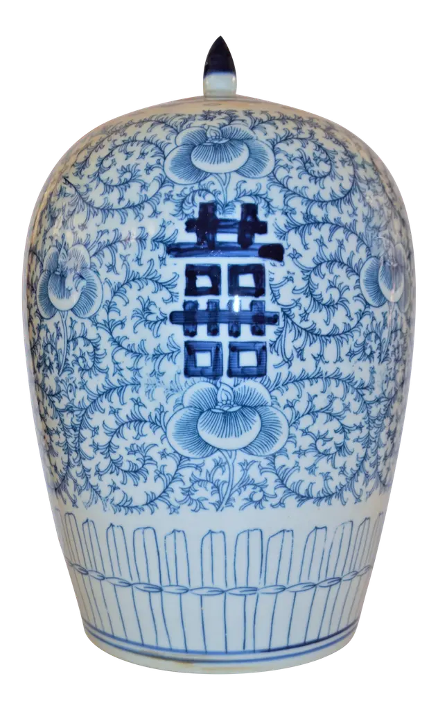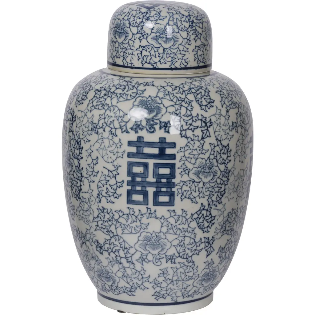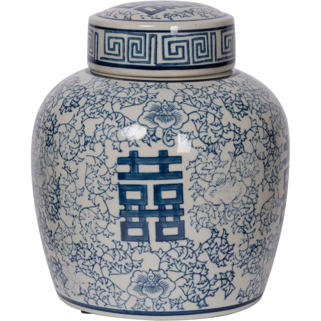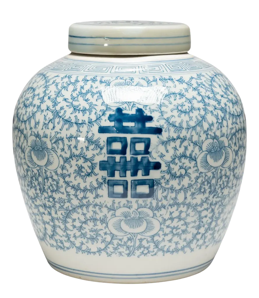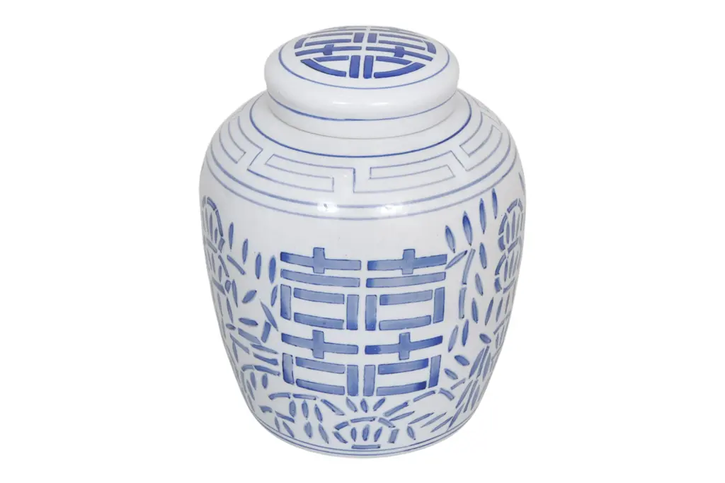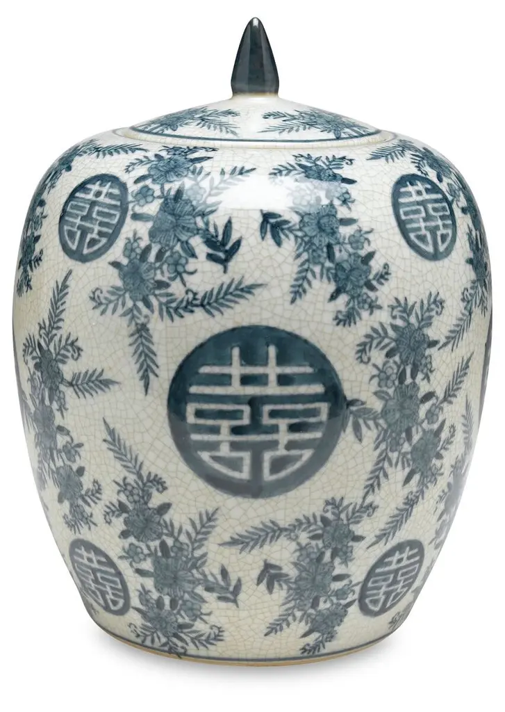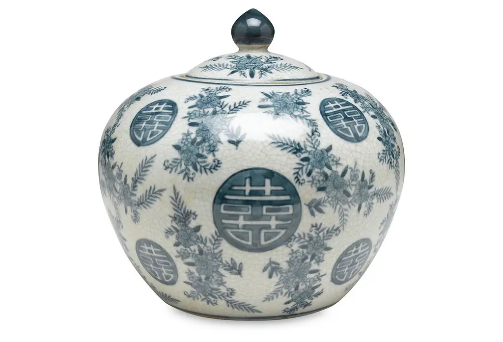 With a classic blue pattern and light-green glaze, this porcelain jar will bring a stylish sophistication to your space. Mix and match for a bolder look.
