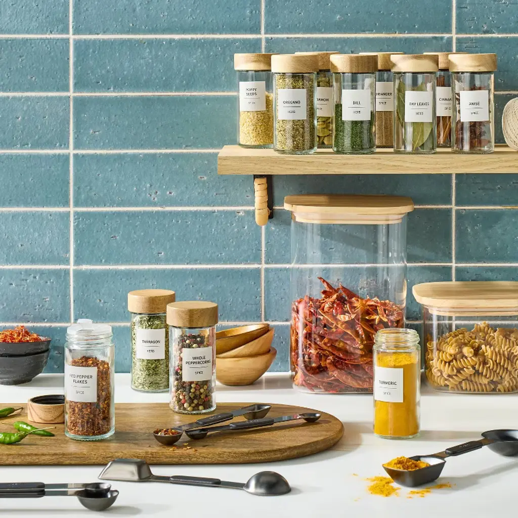 24pc Glass Spice Jar Set Natural Wood - Figmint™