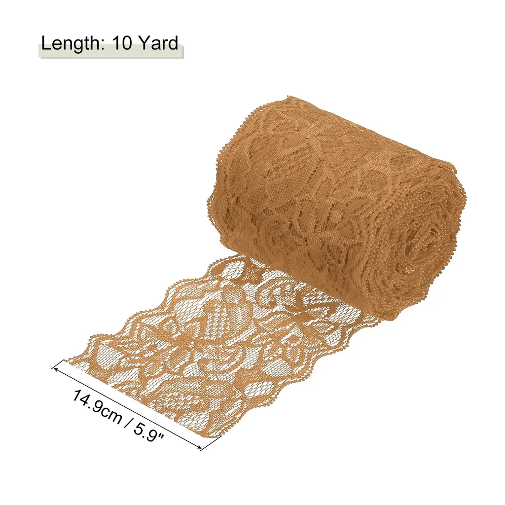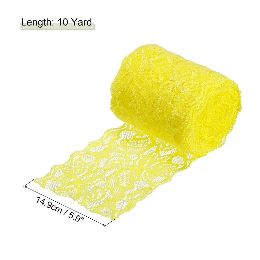 What is this?This Lace Ribbon is mainly used for sewing, wrapping gift boxes and bouquets. It can be used to make hair accessories, DIY your clothing, hats or scarves, etc. It can also be used to DIY cards, decorate various jars or other crafts at home. Great decoration for wedding, birthday, Christmas, Valentine's Day and other partiesWhat will I get?Color: YellowMaterial: polyesterSize: 5.9 inch x 10 Yard (W*L)Package Content: 1 Pack x Lace Trim RibbonAre there any advantages of the product?1. The pattern of the lace ribbon is a hollow flower pattern, which adds a different packaging style to your gift box or bouquet, and adds elegant decoration to your wedding or birthday party.2. Lace trim ribbon is made of polyester material, which is light in weight, has good air permeability and is not easy to deform. bouncy,Easy to use, you can cut the length according to your needs.3. This vintage lace ribbon has a wide range of uses and many color choices. You can choose different colors according to different needs to DIY your gift box or bouquet, or your partyHow to use it?According to the length you need, cut the lace with scissors, and then you can use this lace to decorate or wrap the itemWhat should I notice?Please confirm the size you need before buying