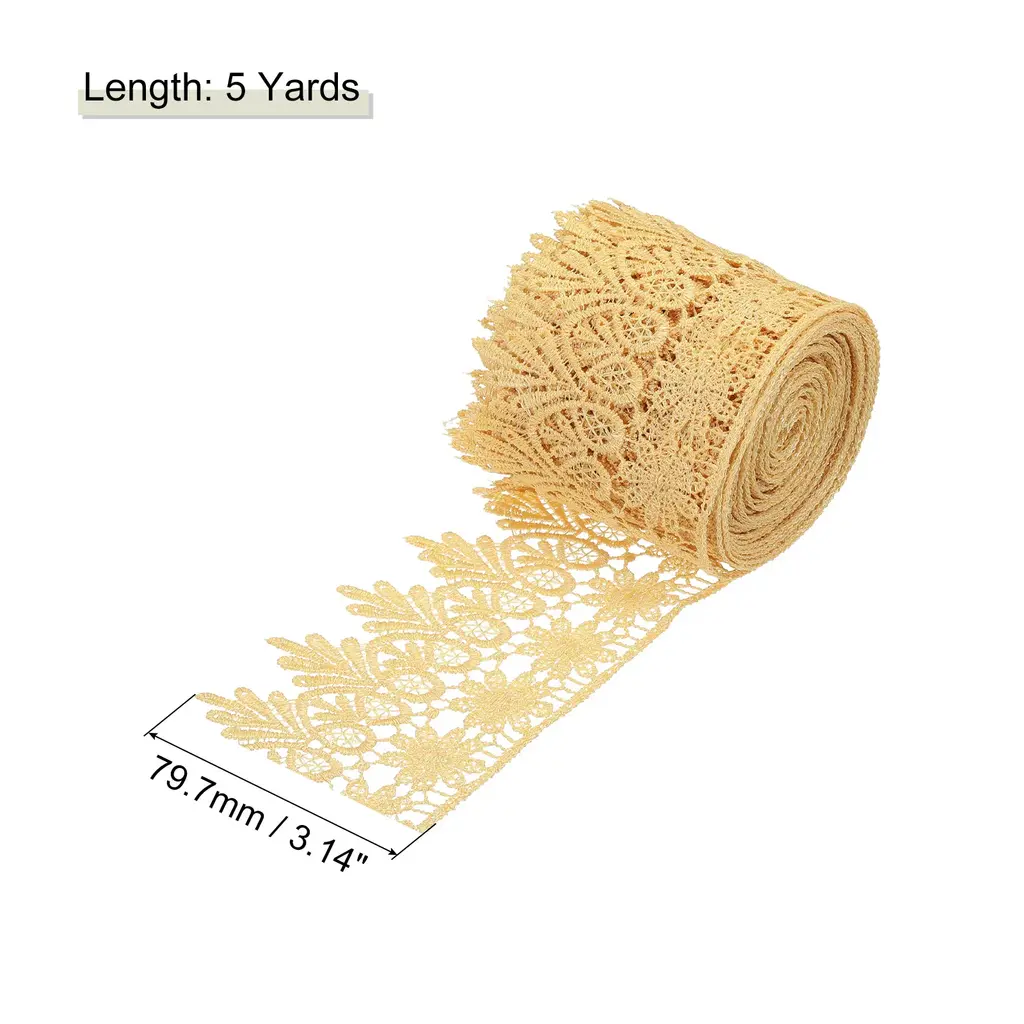 3 Inch Wide 10 Yard Lace Ribbon Floral Pattern Yellow Lace Trim Ribbon - Light Beige