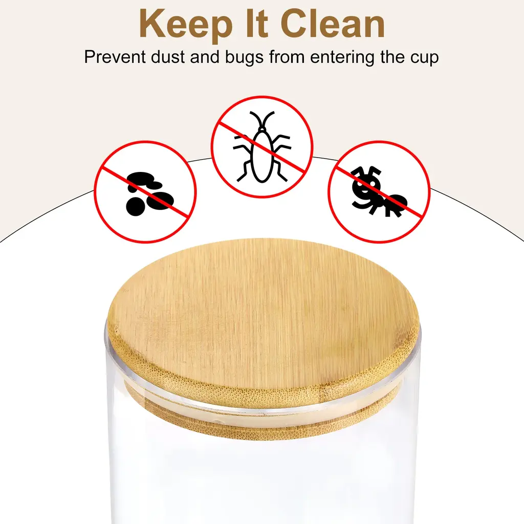 Description:Material - Mason Jar Lids are made of bamboo, which is lightweight, not easy to break, convenient and practical, and easy to clean. Bamboo cup lids do not conduct heat like metal when in use, which can prevent burns.Design - The bamboo lid has smooth and rounded corners, which makes it not easy to scratch your skin. The natural texture and color of bamboo give people a rustic and natural feeling, adding a touch of natural beauty to the cup. You can also DIY your favorite pattern on the lid to decorate the bottle jar.Multifunction - Mug lid not only protects food or drinks from dust but also reduces the cooling rate of beverages, keeping your hot drinks warm for a longer time. These bamboo lids, complete with silicone rings and without straw holes, create a sealed storage environment to maintain the freshness of your food. The silicone ring limits air entry, making it appropriate for storing sauces or juices in a dry state. Furthermore, its dual-purpose design allows it to function as a coaster, adding practicality to your daily life.Widely Applicable - Bamboo mason jar lids are carefully designed for kitchen and pantry use, and fit seamlessly with a variety of containers, including coffee cups, tea cups, drinkware, and even wine glasses for storing beans, grains, nuts, pasta, snacks, candies. Place them over the cups to create a secure seal, protecting your contents.Specification :Materials: BambooOuter Diameter: 102mm/4.02"Mouth Diameter: 100mm/3.94"Thickness: 20mm/0.79"Packaging: 4Pcs x Wooden Mason Jar Lids