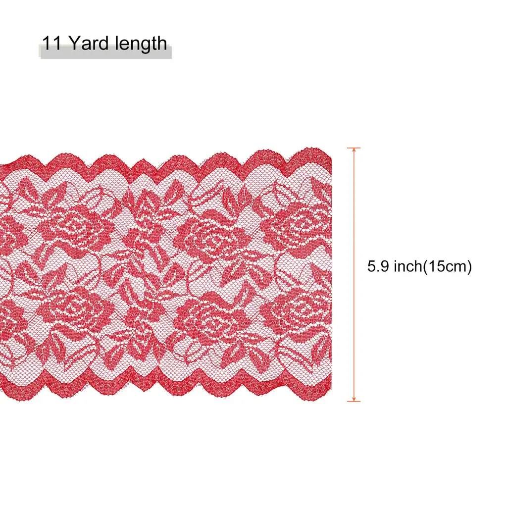 What is this?This Lace Ribbon is mainly used for sewing, wrapping gift boxes and bouquets. It can be used to make hair accessories, DIY your clothing, hats or scarves, etc. It can also be used to DIY cards, decorate various jars or other crafts at home. Great decoration for wedding, birthday, Christmas, Valentine's Day and other partiesWhat will I get?Material: polyesterSize: 5.9 inch x 11 Yard (W*L)Package Content: 1 Pack x Lace Trim RibbonAre there any advantages of the product?1. The pattern of the lace ribbon is a hollow flower pattern, which adds a different packaging style to your gift box or bouquet, and adds elegant decoration to your wedding or birthday party.2. Lace trim ribbon is made of polyester material, which is light in weight, has good air permeability and is not easy to deform. Easy to use, you can cut the length according to your needs.3. This vintage lace ribbon has a wide range of uses and many color choices. You can choose different colors according to different needs to DIY your gift box or bouquet, or your partyHow to use it?According to the length you need, cut the lace with scissors, and then you can use this lace to decorate or wrap the itemWhat should I notice?Please confirm the size you need before buying