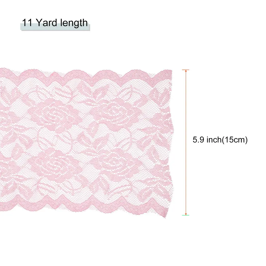 6 Inch Wide 11 Yard Lace Ribbon Floral Pattern Lace Trim Ribbon - Pink