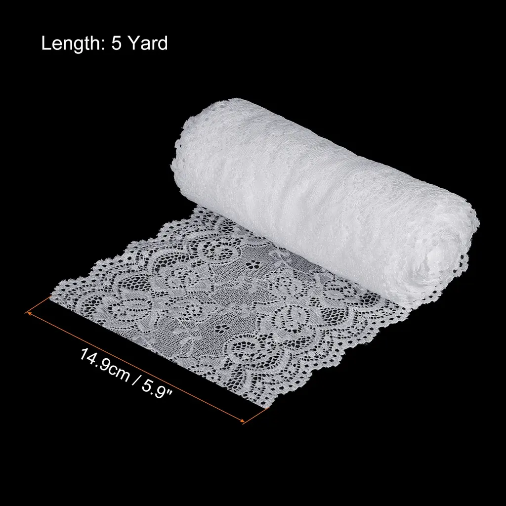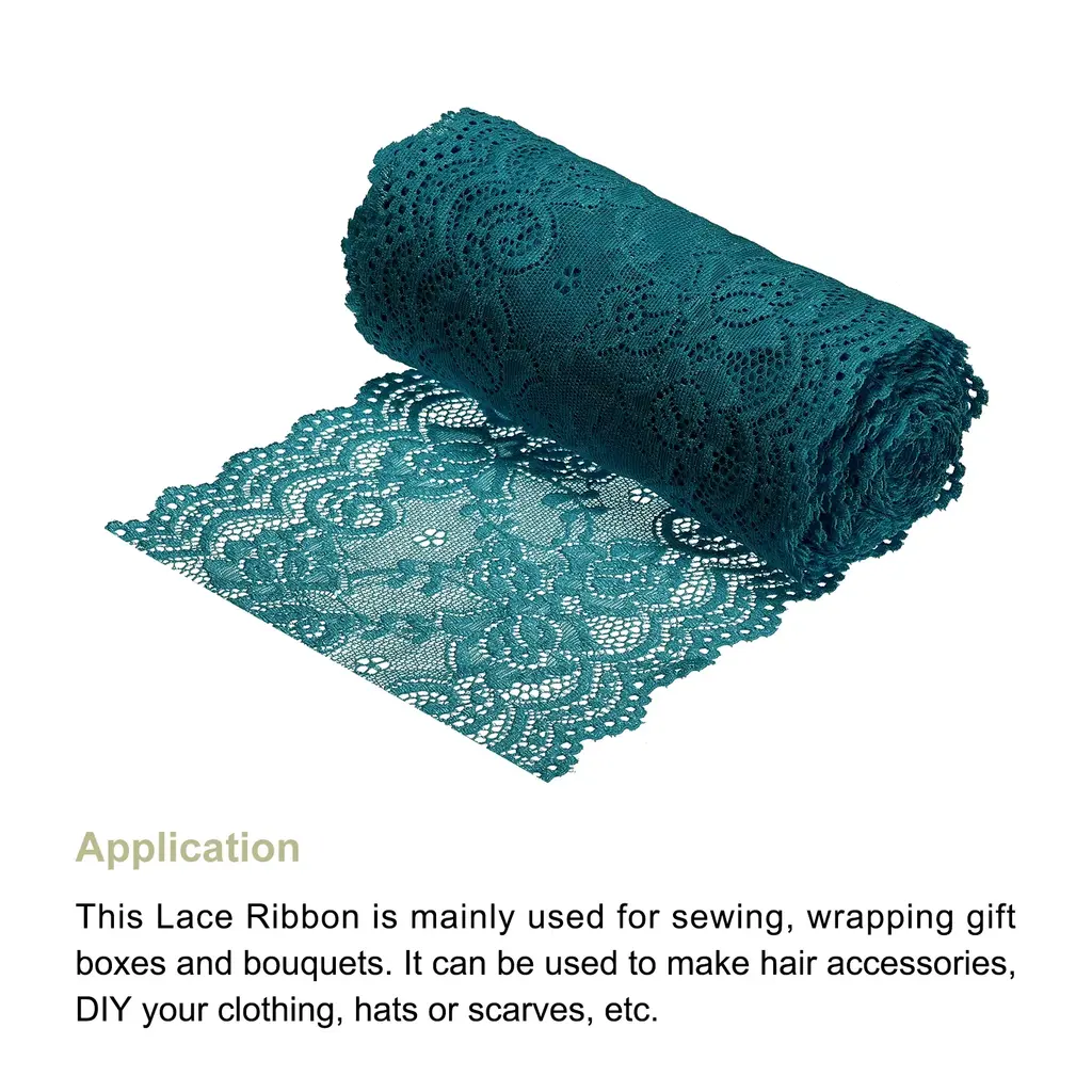 What is this?This Lace Ribbon is mainly used for sewing, wrapping gift boxes and bouquets. It can be used to make hair accessories, DIY your clothing, hats or scarves, etc. It can also be used to DIY cards, decorate various jars or other crafts at home. Great decoration for wedding, birthday, Christmas, Valentine's Day and other partiesWhat will I get?Color: Dark BlueMaterial: polyesterSize: 5.9 inch x 5 Yard (W*L)Package Content: 1 Pack x Lace Trim RibbonAre there any advantages of the product?1. The pattern of the lace ribbon is a hollow flower pattern, which adds a different packaging style to your gift box or bouquet, and adds elegant decoration to your wedding or birthday party.2. Lace trim ribbon is made of polyester material, which is light in weight, has good air permeability and is not easy to deform. bouncy,Easy to use, you can cut the length according to your needs.3. This vintage lace ribbon has a wide range of uses and many color choices. You can choose different colors according to different needs to DIY your gift box or bouquet, or your partyHow to use it?According to the length you need, cut the lace with scissors, and then you can use this lace to decorate or wrap the itemWhat should I notice?Please confirm the size you need before buying