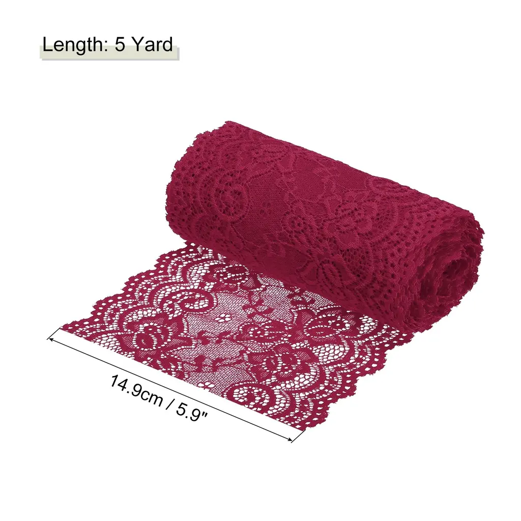 6 Inch Wide 5 Yard Lace Ribbon Floral Pattern Lace Trim Ribbon - Burgundy Red