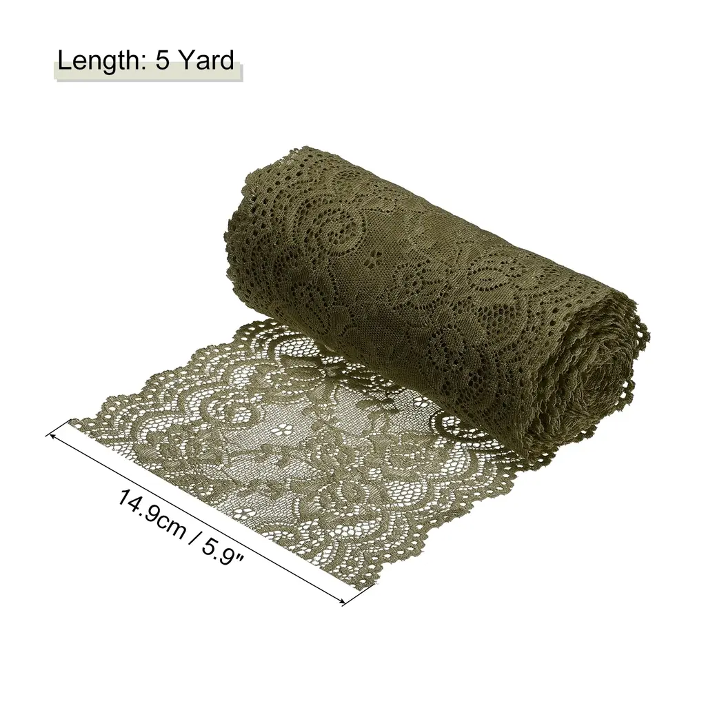 6 Inch Wide 5 Yard Lace Ribbon Floral Pattern Lace Trim Ribbon - Dark Rose Red