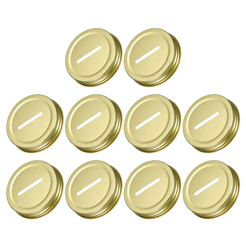 70mm/2.76" Coin Slot Bank Lid Inserts For Mason Jar Canning Cap, 15pcs - Gold Tone
