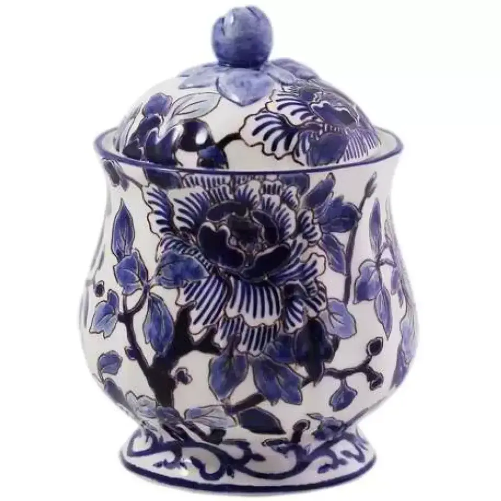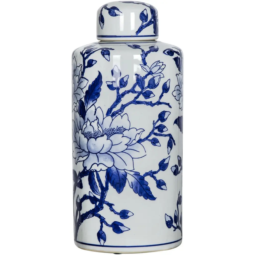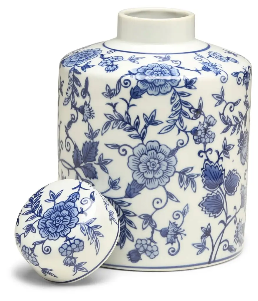 9" Arundel Cylindrical Ginger Jar, Blue/white