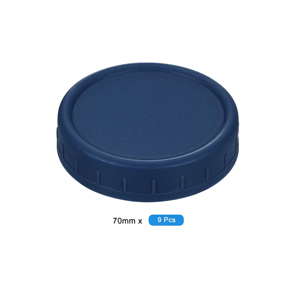 Description:[Material]: The Mason jar lid is made of good-quality plastic. The thickened material is sturdy, durable, and odorless. Each Mason jar lid comes with a silicone ring that is removable for easy cleaning. It is very suitable for storing food.[Design]: Our Mason jar lids feature vertical stripes on the edges to increase friction and prevent slipping, making it easier to tighten or open the lid. It is equipped with a silicone ring, which has strong sealing and can effectively prevent the contents of the bottle from leaking out.[Beauty and Convenient]: The lid can be easily cleaned with a cleaning brush. Its bright color can enhance the visual appeal of the jar, and add a touch of bright color to your Mason jar.[Application]: Plastic jar lid is suitable for a variety of jars such as Mason jars and Ball jars. They can be used to hold many different types of food such as candy, cereals, fruits, salads, etc. Their portability and leak-proof design make them a great choice for outdoor picnics, camping, or traveling.SpecificationMaterial: PlasticColor: Dark BlueMouth Lid Size: 70 x 18mm / 2.76 x 0.71inch(ID*H)Package Content: 9 Pcs Regular Mouth Lid