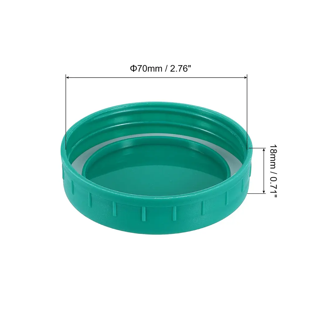 Description:[Material]: The Mason jar lid is made of good-quality plastic. The thickened material is sturdy, durable, and odorless. Each Mason jar lid comes with a silicone ring that is removable for easy cleaning. It is very suitable for storing food.[Design]: Our Mason jar lids feature vertical stripes on the edges to increase friction and prevent slipping, making it easier to tighten or open the lid. It is equipped with a silicone ring, which has strong sealing and can effectively prevent the contents of the bottle from leaking out.[Beauty and Convenient]: The lid can be easily cleaned with a cleaning brush. Its bright color can enhance the visual appeal of the jar, and add a touch of bright color to your Mason jar.[Application]: Plastic jar lid is suitable for a variety of jars such as Mason jars and Ball jars. They can be used to hold many different types of food such as candy, cereals, fruits, salads, etc. Their portability and leak-proof design make them a great choice for outdoor picnics, camping, or traveling.SpecificationMaterial: PlasticColor: Dark BlueMouth Lid Size: 70 x 18mm / 2.76 x 0.71inch(ID*H)Package Content: 9 Pcs Regular Mouth Lid
