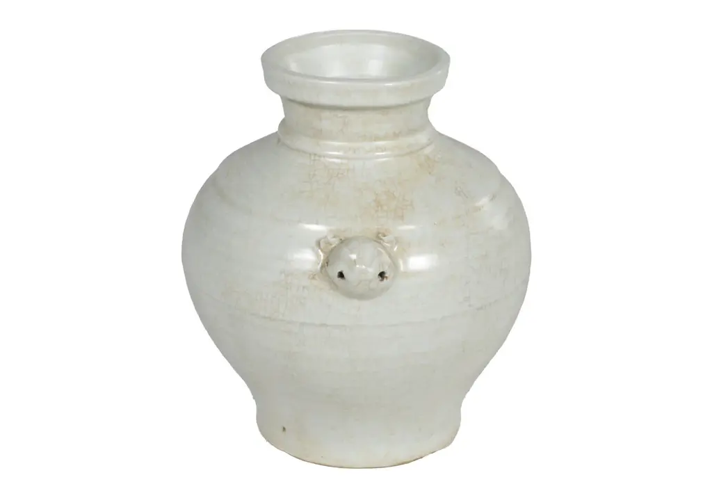 Final Sale A versatile must-have, the Agnes Jar features an aged matte ivory finish beautifully highlighting its shapely form and gargoyle features. Its regal, historical feel gives a European elegance, styling well alone or filled with foraged branches.