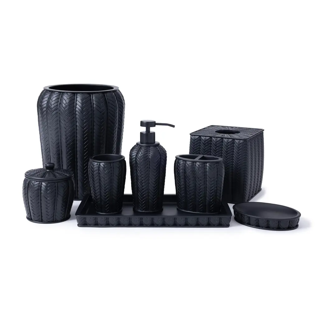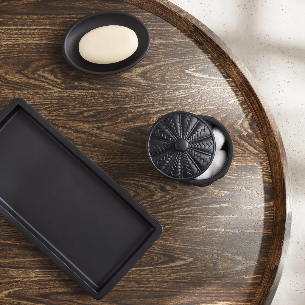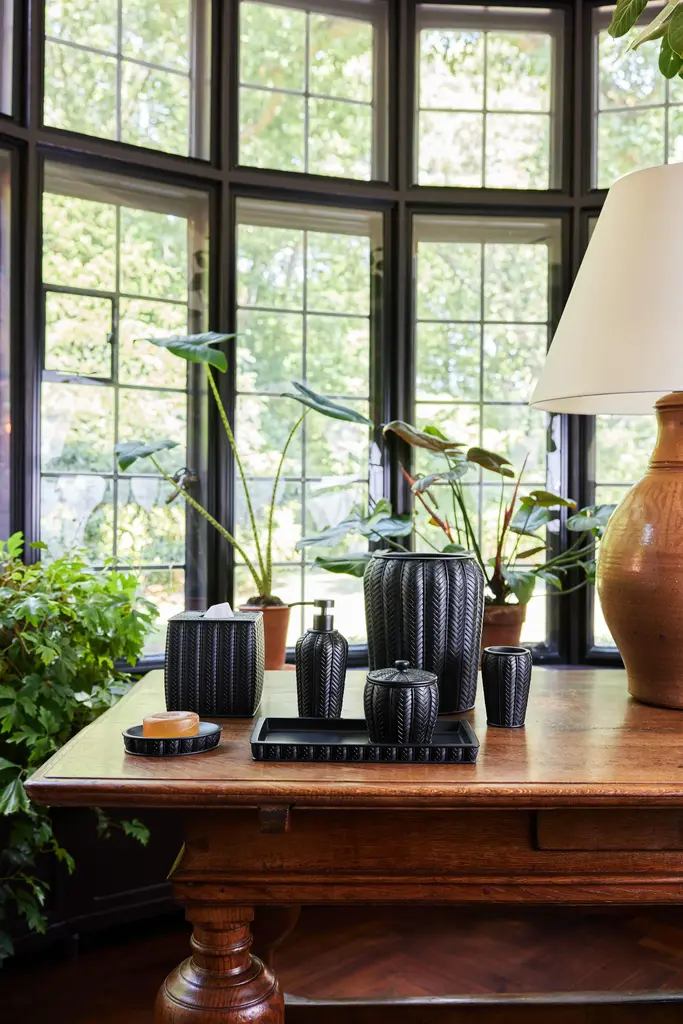 Designed in collaboration with interior designer, Alfredo Paredes. Inspired by the intricate craftsmanship of bamboo woven vases from Japanese artisans, the Mambo collection is constructed from sculpted resin to emulate the weaving process and the subtle patina. Available in mahogany and noir colorways, the collection pays homage to this venerated historical art form.