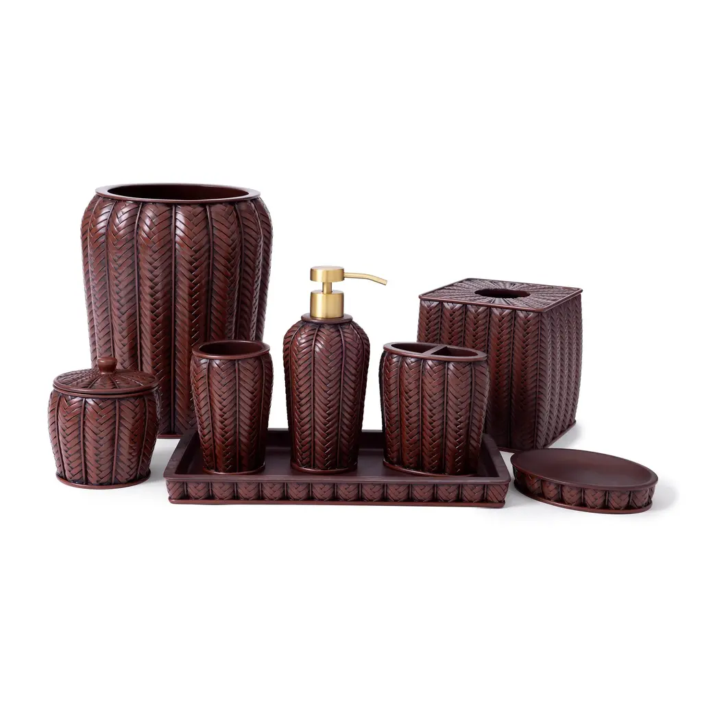 Designed in collaboration with interior designer, Alfredo Paredes. Inspired by the intricate craftsmanship of bamboo woven vases from Japanese artisans, the Mambo collection is constructed from sculpted resin to emulate the weaving process and the subtle patina. Available in mahogany and noir colorways, the collection pays homage to this venerated historical art form.