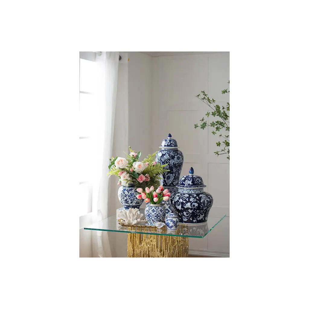 With its traditional blue and white color combination, the Aline Butterfly Lidded Jar features stunningly detailed patterns painted on a ceramic background for a classic look that fits a variety of decors. Whether used on a classic mantle or bright sunroom, this jar brings an ageless beauty to any room. Its pure ceramic construction fortifies the delicately decorated piece with durable strength.