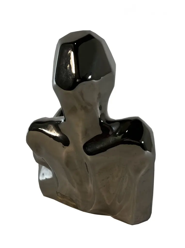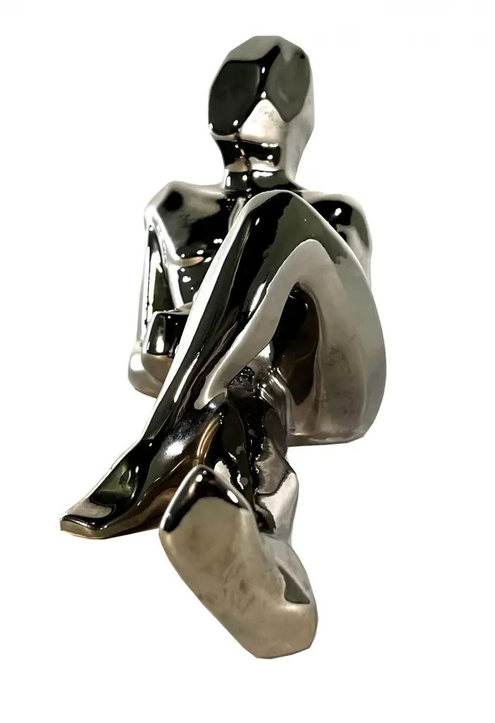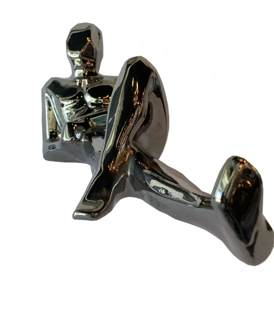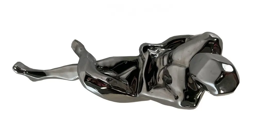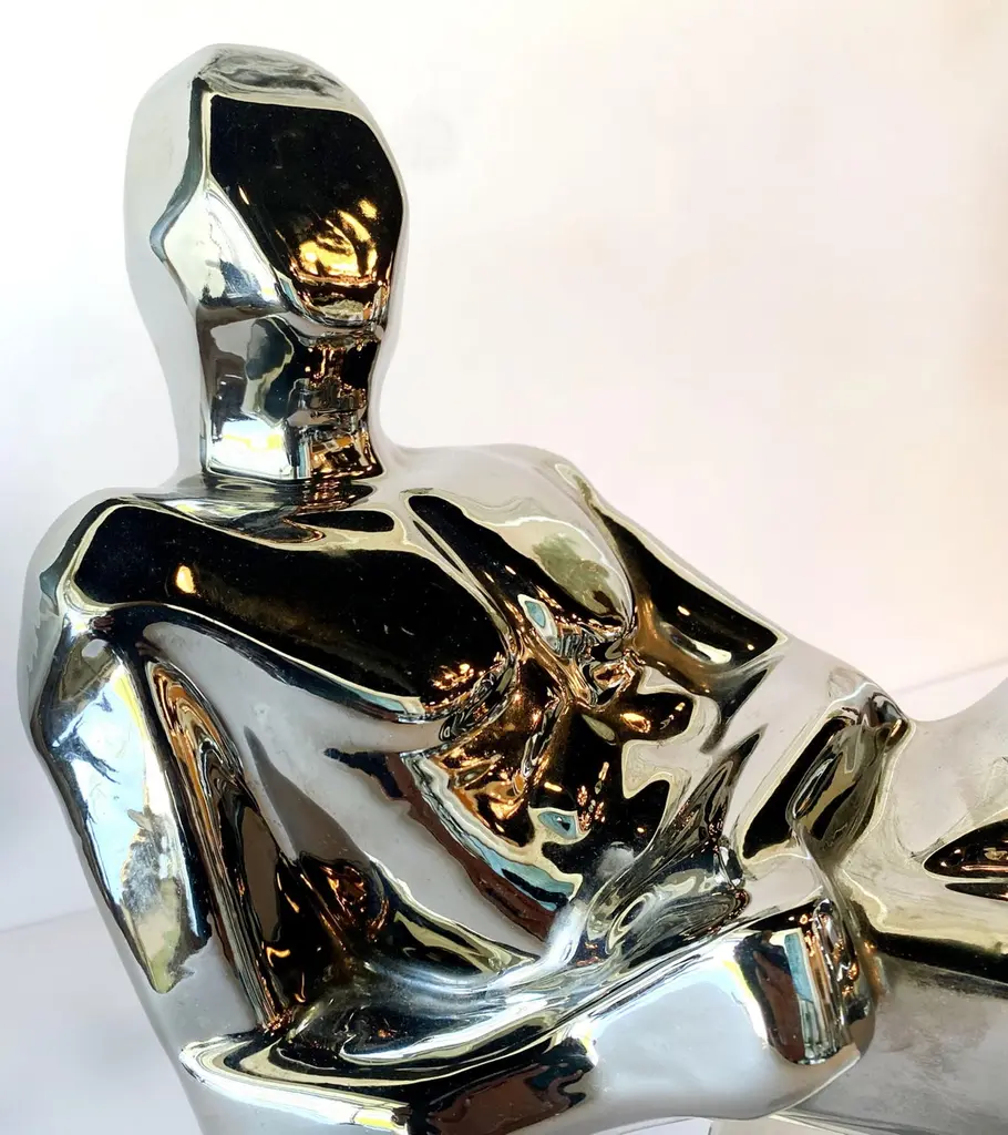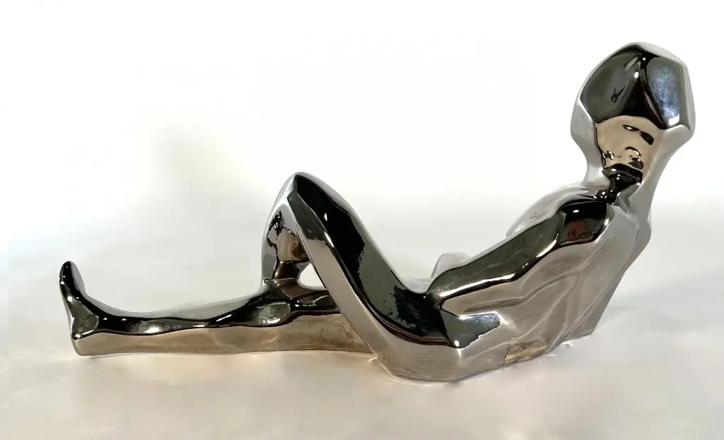 American Modern Ceramic Silver Glazed Reclining Man, Jaru