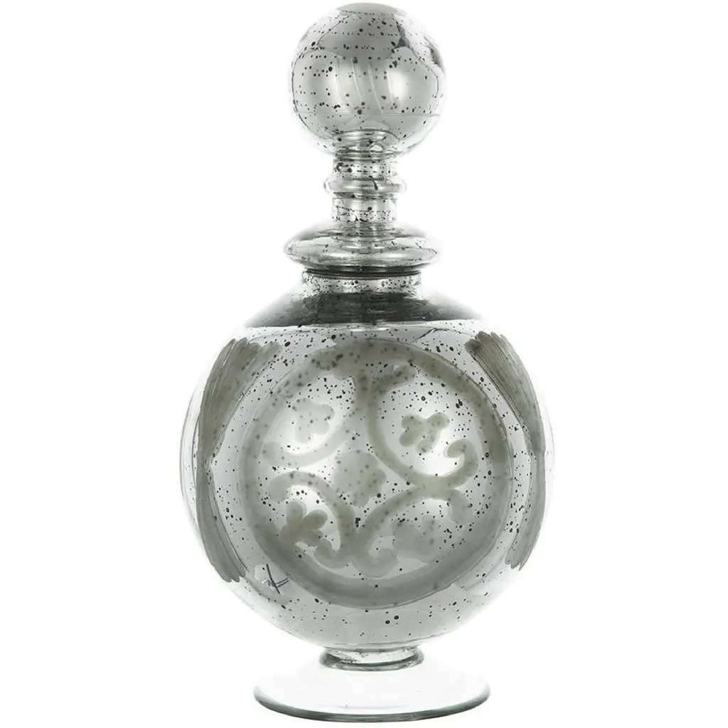 Display this eye-catching Antique Style Round Glass Jar with Lid and Etched Pattern to fit and enhance any décor style.