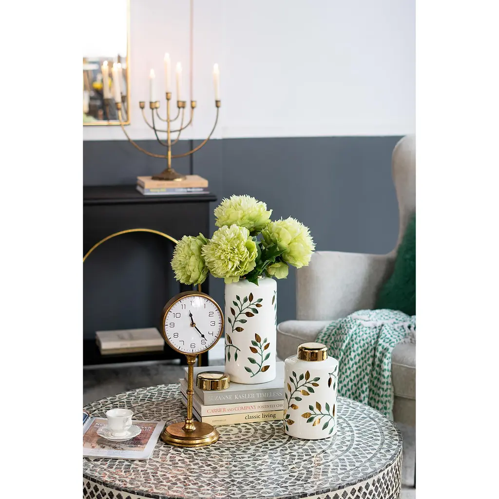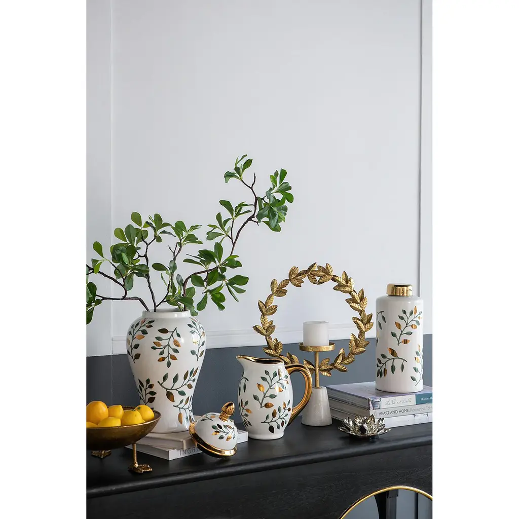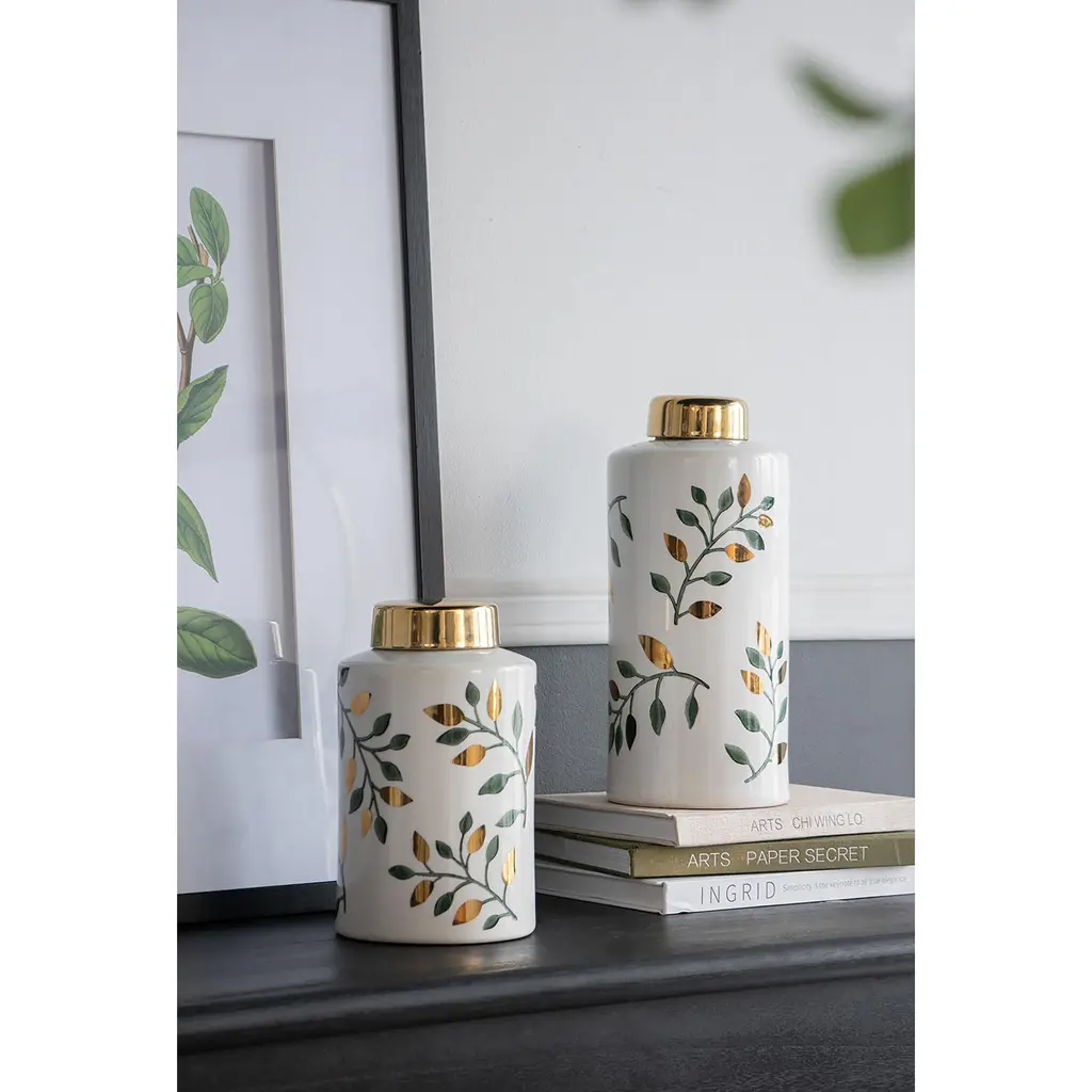 Adorn your interior space with our charming lidded jar. Surprisingly versatile and poised to make a statement anywhere in your home, this piece effortlessly elevates any space with its timeless appeal. Whether you're sprucing up your living room or giving your study a makeover, this jar is the perfect accent for that chic, personal touch.