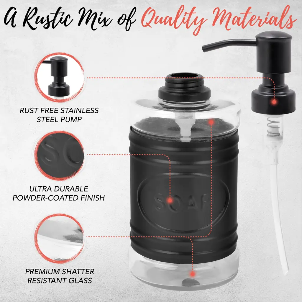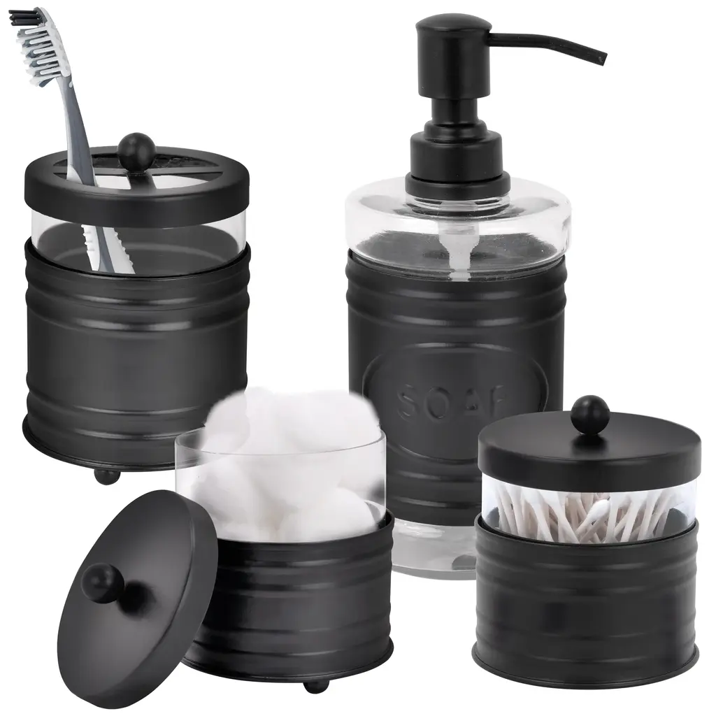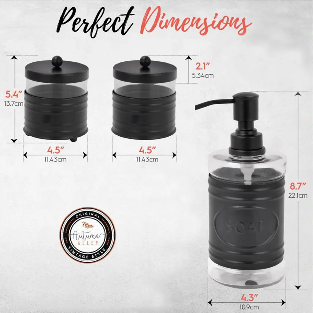 Autumn Alley 3 Piece Farmhouse Bathroom Accessory Set, Galvanized Soap Dispenser, 2 Apothecary Jars Farmhouse Décor - Matte Black