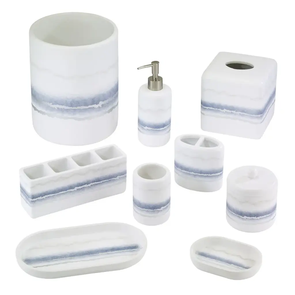 The Now House by Jonathan Adler Vapor-covered jar features a marble look with a matte white base and irregular horizontal bands. No two pieces are the same. Made of durable resin. The item that can be used to freshen up any room in your house-bathroom, kitchen, bedroom, or office.